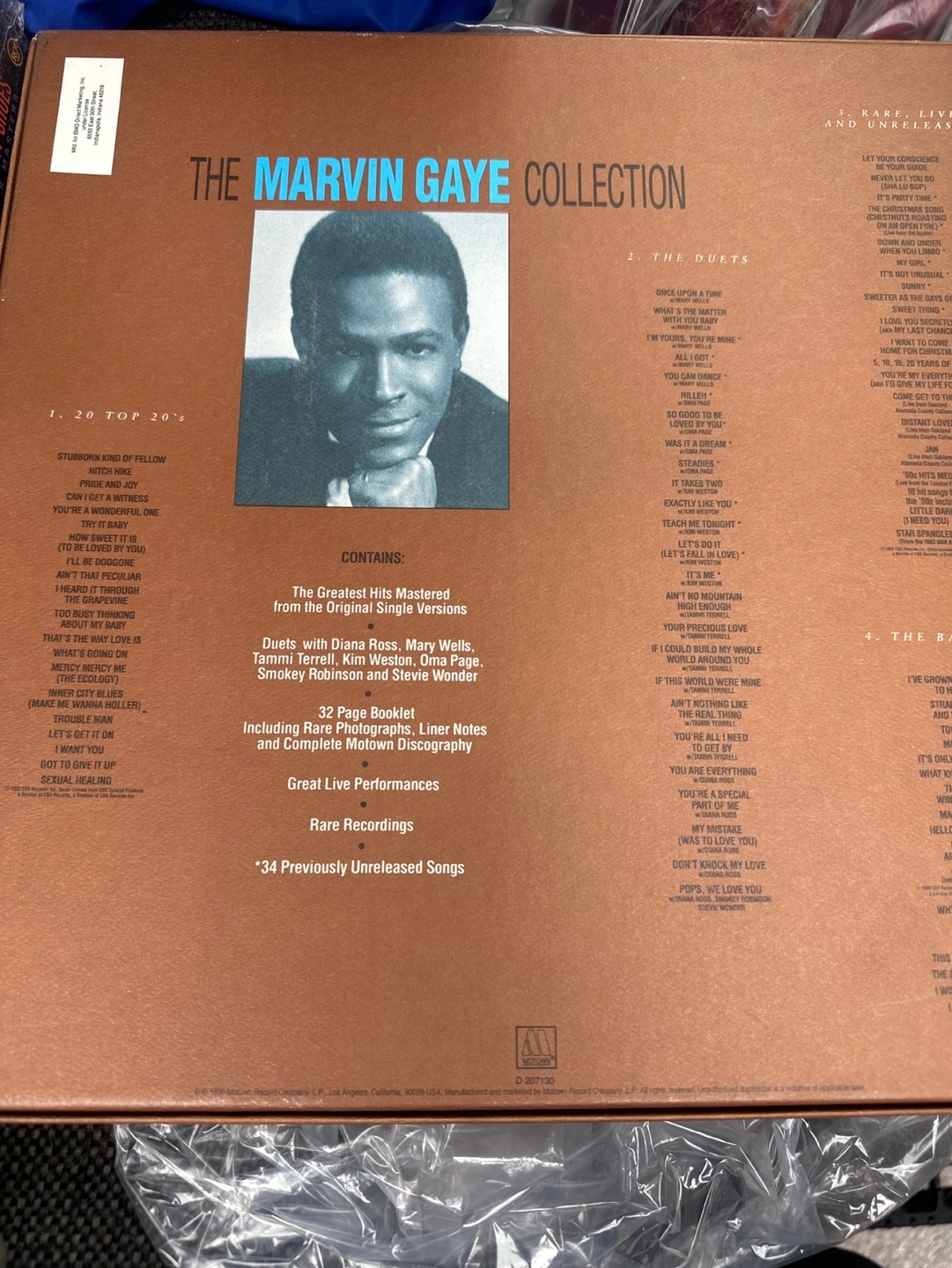 The Marvin Gaye Collection, 4-LP box set. Includes 32-page booklet, liner notes, and complete Motown discography. Features rare performances and recordings. 34 previously unreleased songs.