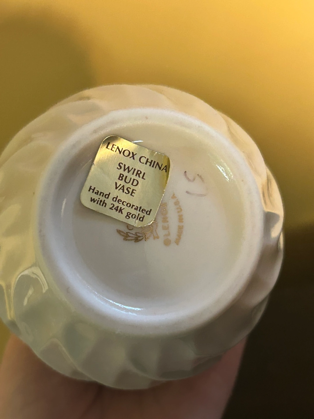 Buy & SellLenox China Swirl Bud Vase, 24k Gold AccentsLenox China Swirl Bud Vase, 24k Gold Accents$15Elegant Lenox China vase. Swirl design. 24k gold accents. Hand-decorated. Medium size, perfect for a bouquet or display.ConditionNewWHERE TO MEETHomeView MapSELLERverifiedRebecca WOceanside650 reviews0 chats·0 favorites·2 viewsSEND CHAT TO SELLERHi Rebecca W! I’m interested in your listing.Hi Rebecca W! I’m interested in your listing.Get the Karrot app to chatSign In to chat