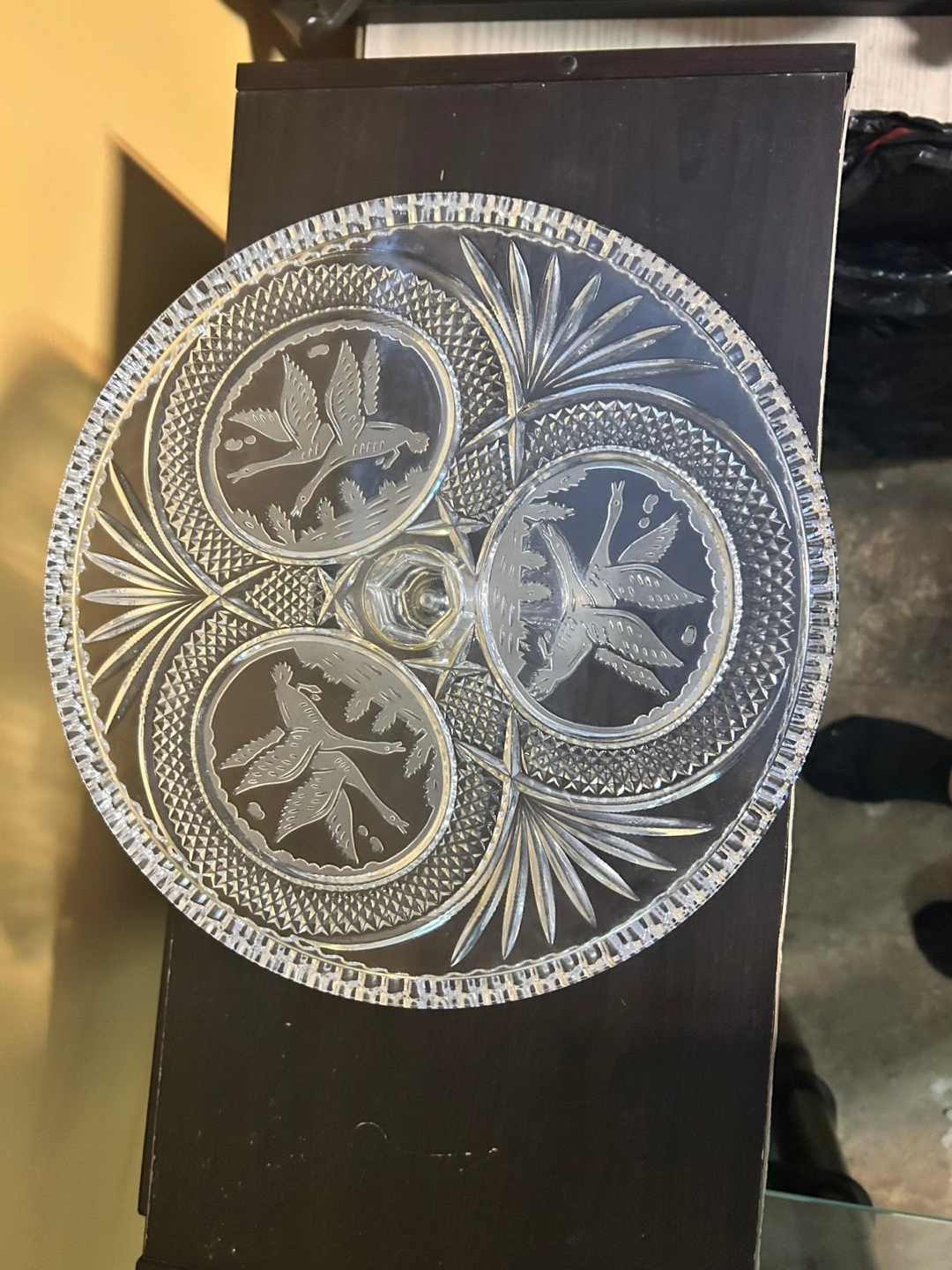 Vintage Crystal Cake Stand with Bird Design