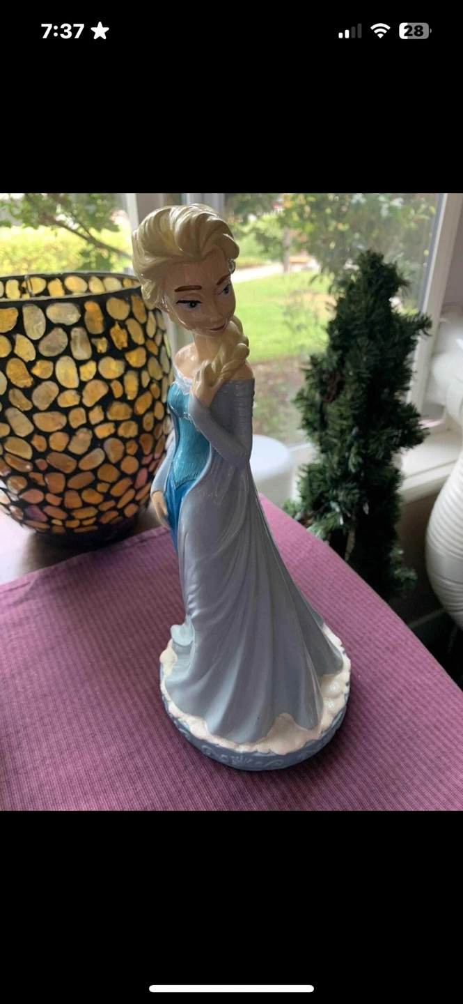 12” tall Ceramic Elsa figurine from Disney's Frozen. Light blue dress. Collectible statue. Excellent condition so Elsa figurine could be gifted.