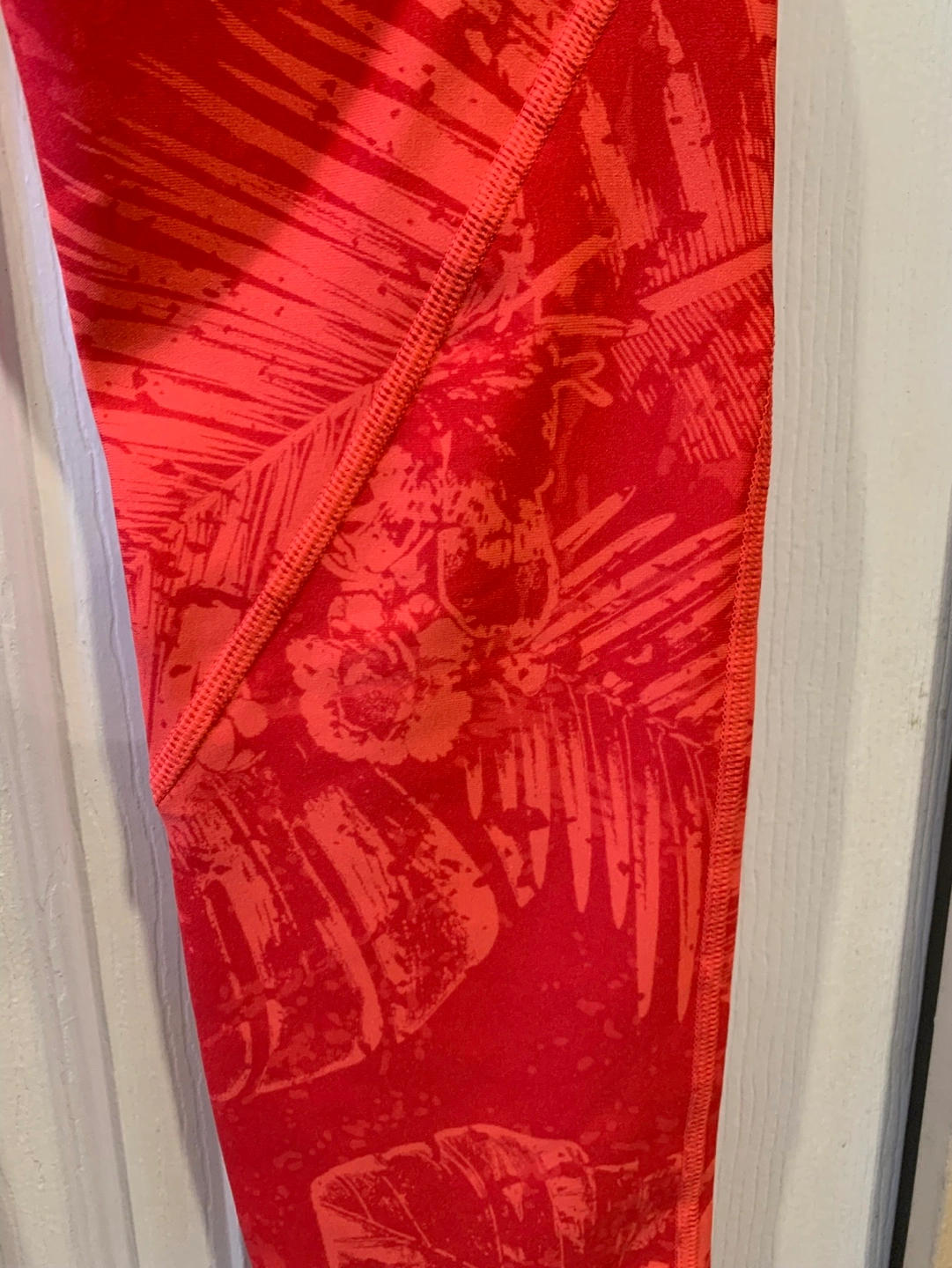 With hues ranging from fluorescent red to neon blood orange to vivid coral, these vibrant capri-style leggings will help boost your mood, energize and motivate, and do your workout wonders! The cheerful Hawaiian pattern will certainly add some "Aloha" to your training session, and is a great way to express your unique style, enhancing your self-image and confidence. After all, why settle for boring when you can be bold, bright and bedazzling?!