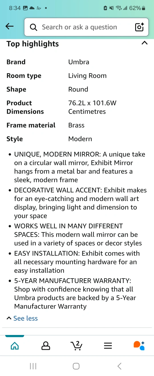 456Modern circular wall mirror. Sleek design, brass frame. Easy installation. Includes mounting hardware. Great for living room or bedroom. NEW UNOPENED Pick up only, Keele and Major Mackenzie Please do not ask if it's available. Once sold, the item will be taken down/updated. Serious inquiries only. Thanks