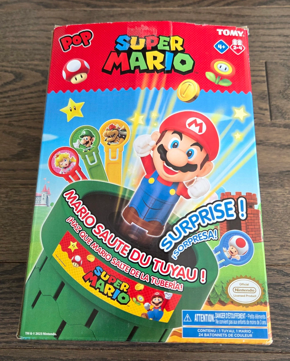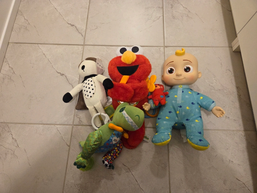 Pre-loved children's items. Includes Peppa Pig Story Time Box (Scholastic), Super Mario Pop-Up Game (Tomy), assorted plush toys, Connecting Game, and Baby Shark Fishing Game (Cardinal). Great for toddlers and preschoolers.