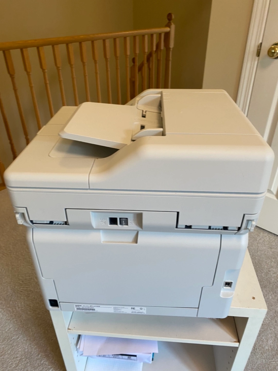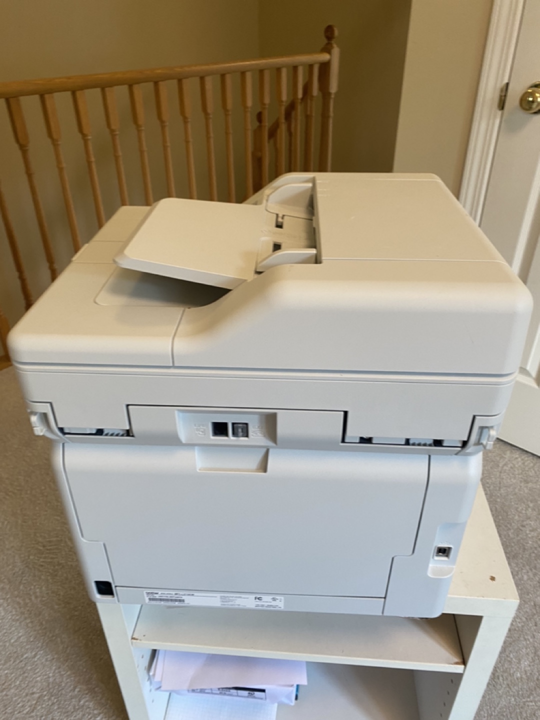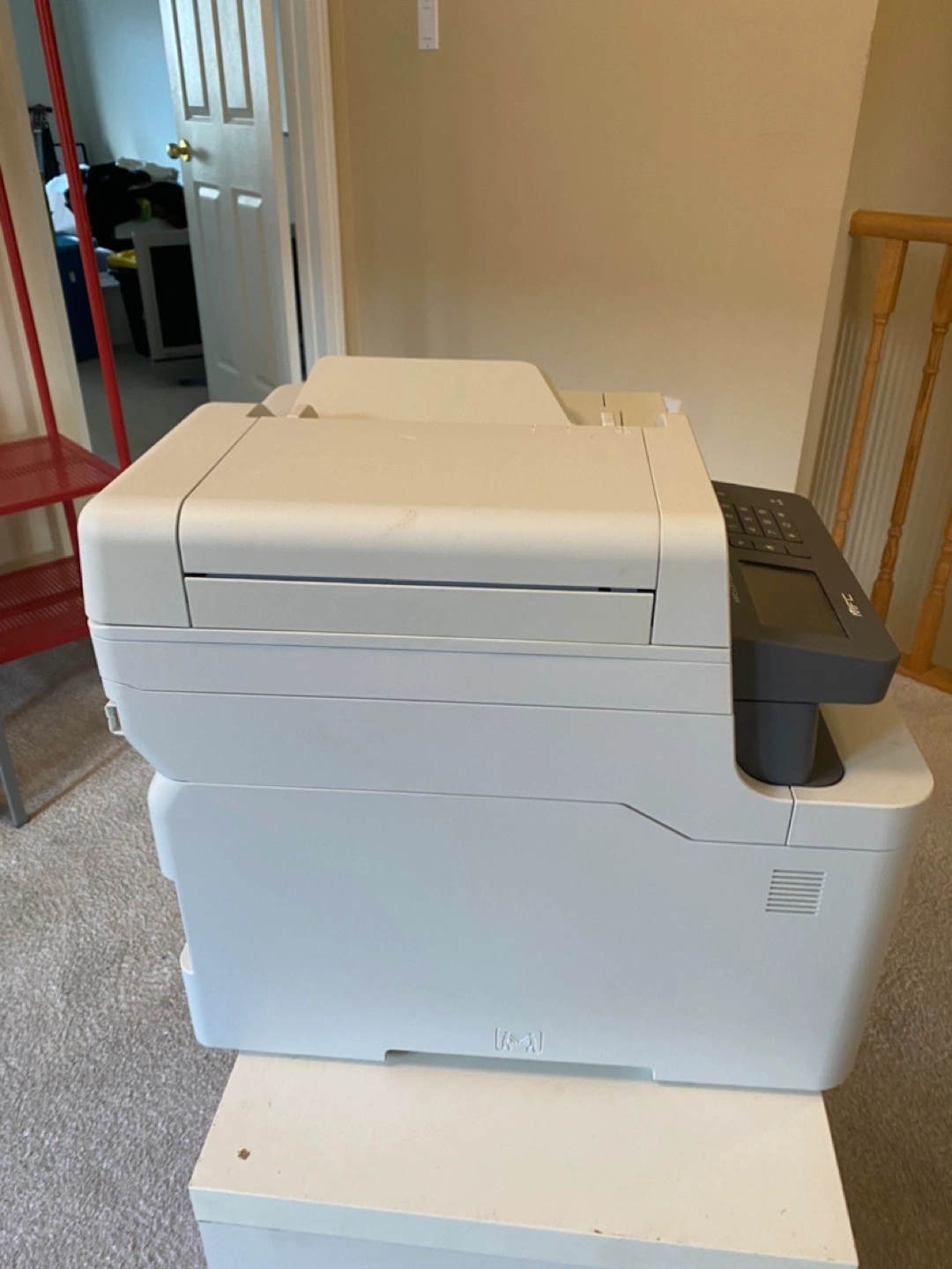 Multi-function colour laser printer. Prints, scans, copies, and faxes. Wireless connectivity. Good condition.