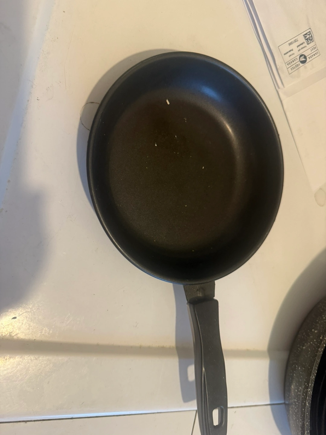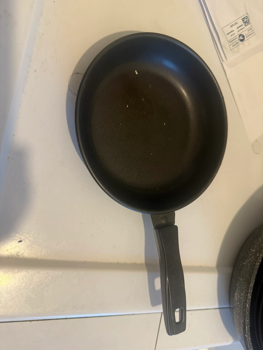 Used small frying pan. Non-stick surface. Black colour. Good for eggs or small portions. Plastic handle.