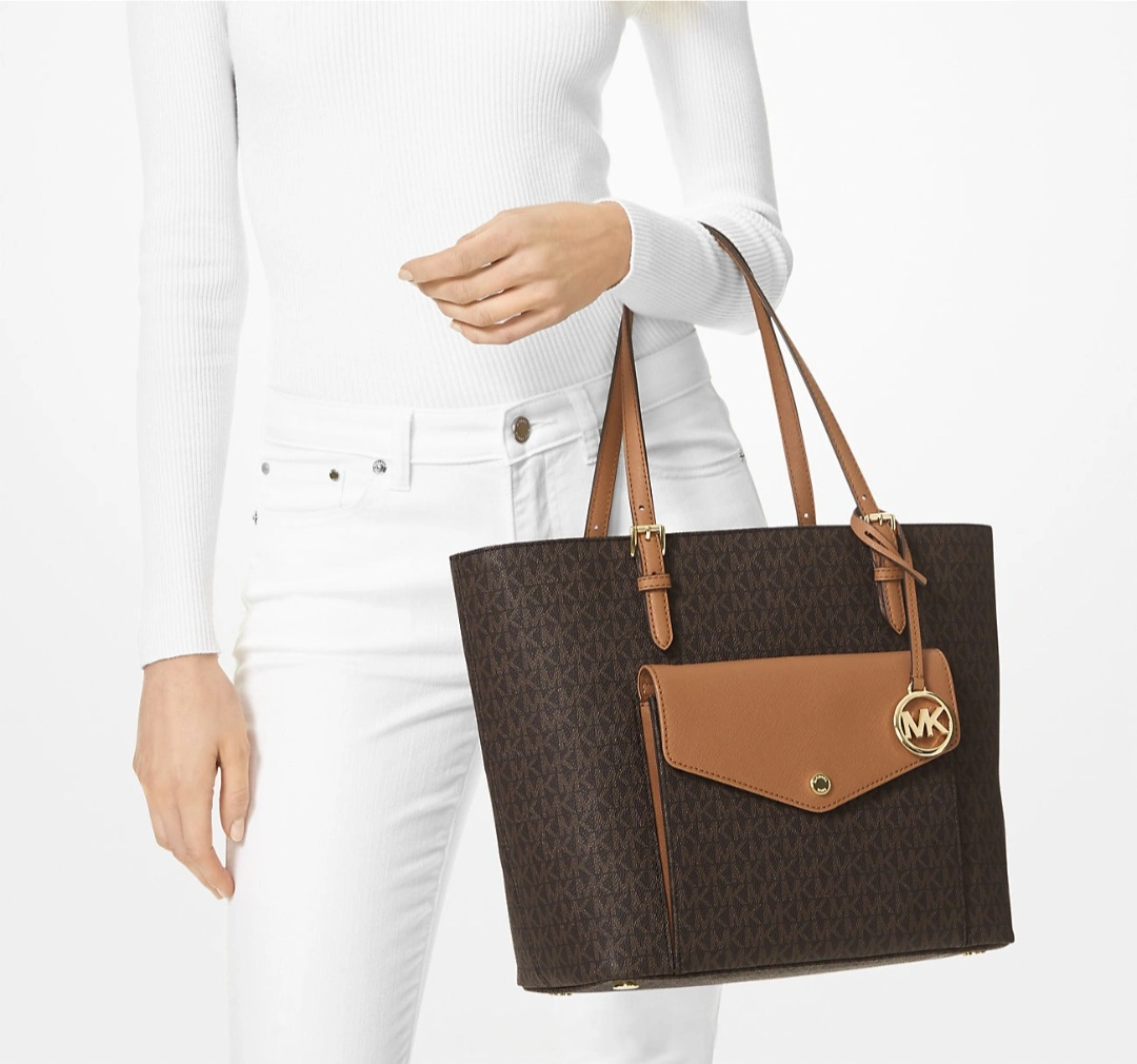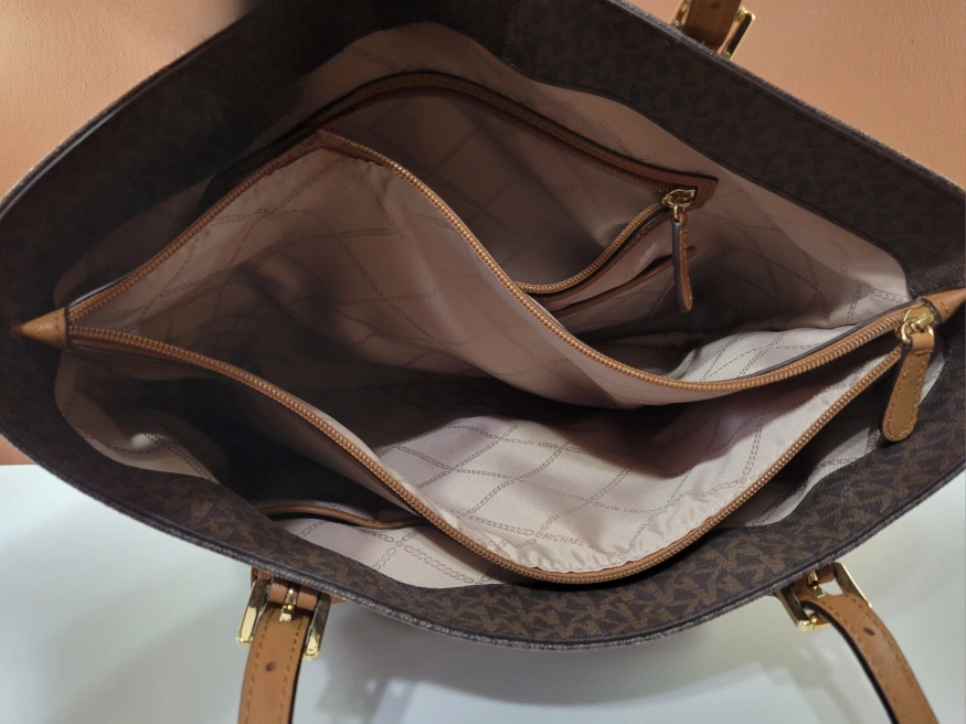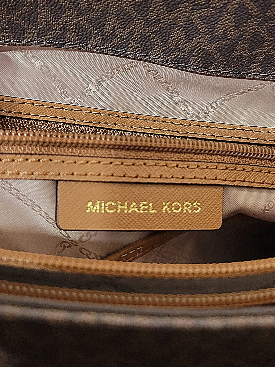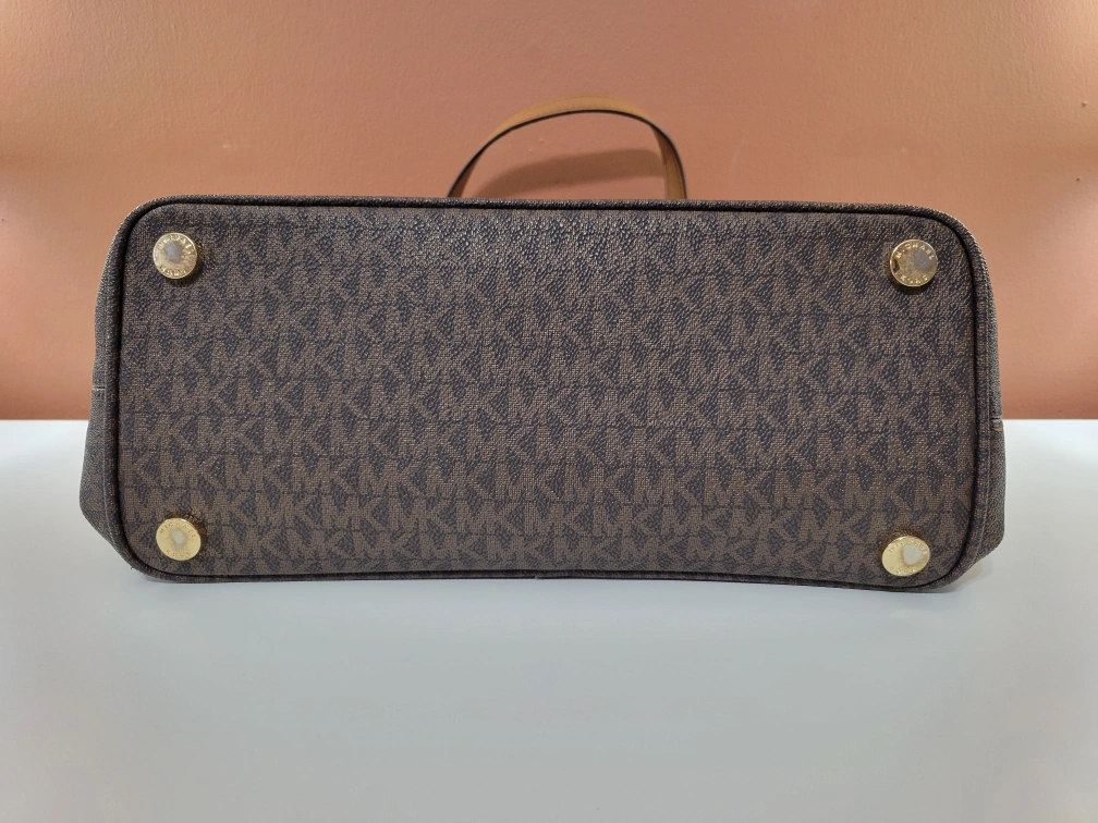 254Michael Kors Jet Set Large Logo Pocket Tote Bag -From: Michael Kors Niagara Falls 🇨🇦 -AUTHENTIC MICHAEL KORS TOTE -VERY EXCELLENT CONDITION! -LIKE NEW! BARELY USED! -Size: Large -Colour: Dark brown with Camel brown accents -Pattern: MK initial logo -Open top with 2 top handles -Gold hardware -3 Large inner compartments -Snap closure outer pocket featured on front -Excellent for school/work (holds mid-size laptop easily) or as a diaper bag... very versatile piece! 📸PLEASE SEE PHOTO GALLERY FOR MORE DETAILS ABOUT THIS ITEM📸 Asking only $50 (FIRM & FINAL) 💰CASH PREFERRED, PLEASE💰 ‼️AVAILABLE FOR A LIMITED TIME‼️ ⚠️Please only message if you are SERIOUS about buying AND you know when you'd like to pick up.⚠️ 🚙Located in North Oshawa BEATRICE & RITSON area.🚙 ⏰️No holds longer than 2 days.⏰️ ❗️POSTED ON VARAGESALE, KARROT, & MARKETPLACE❗️