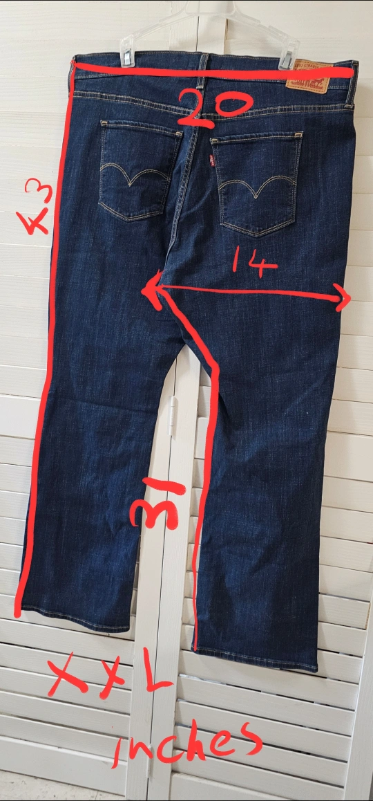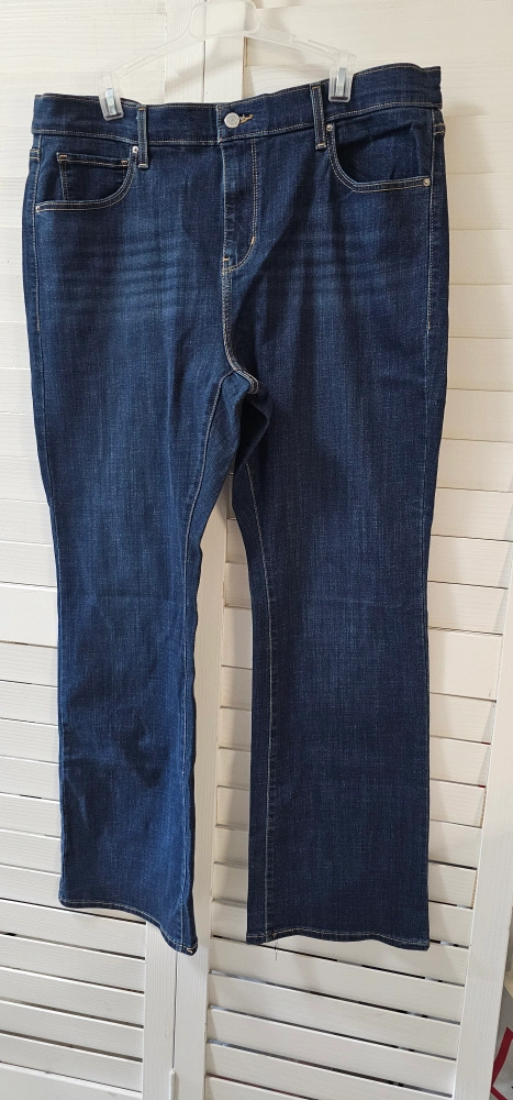 Dark wash bootcut jeans. Women's size 20x31. Good condition. Measurements provided in image.