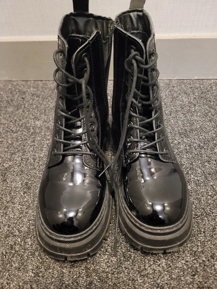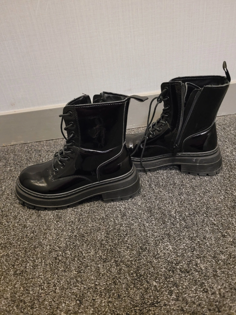 Moving Sale!! Black Patent Leather Lace-Up Platform Boots