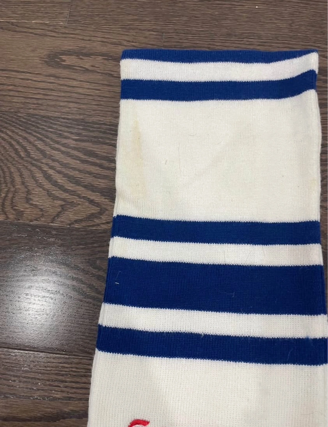 Leafs scarf has few spots about 5 feet