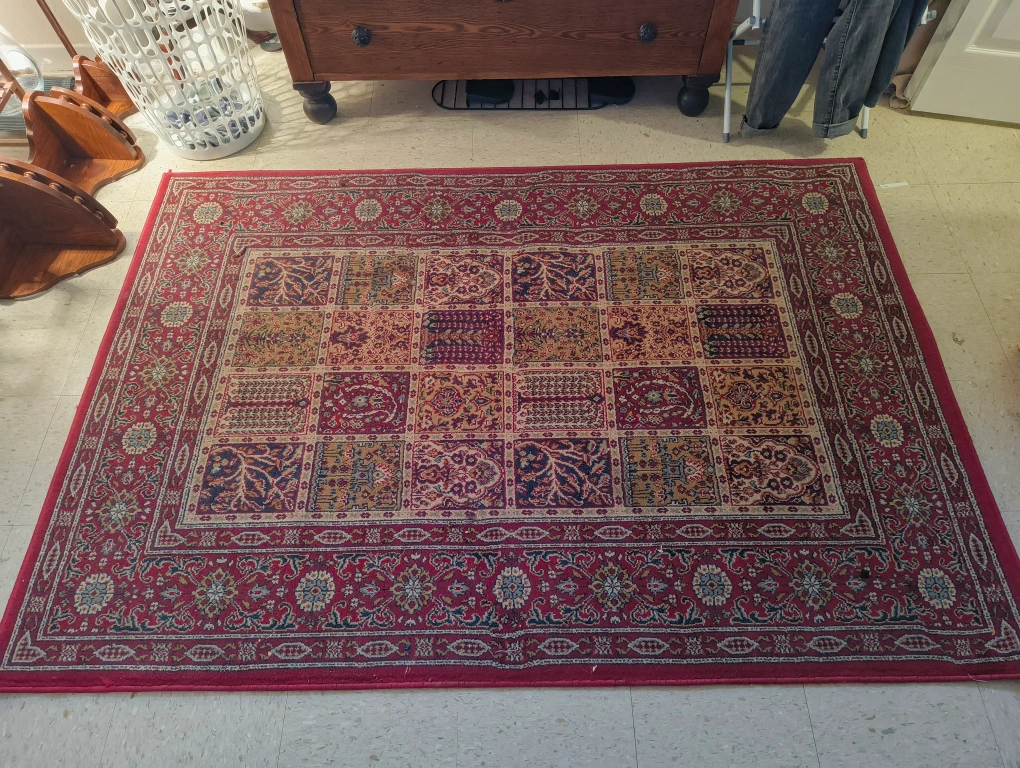 Originally from IKEA, several years old. It isn't faded, the colour has held up well. I moved since buying it and it doesn't fit with my new space. Good condition apart from one small damaged spot (see photo) I will vacuum it, but it could use a deep clean