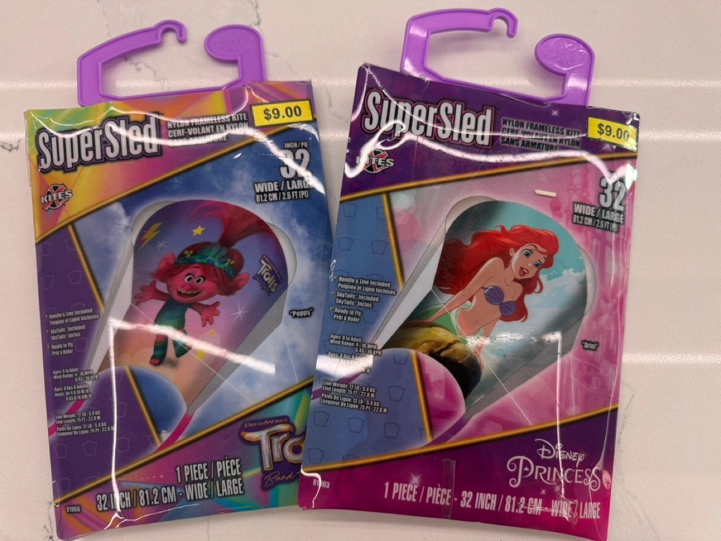 Kids 32 inch wide Kite Little Mermaid OR Trolls BRAND NEW IN PACKAGE