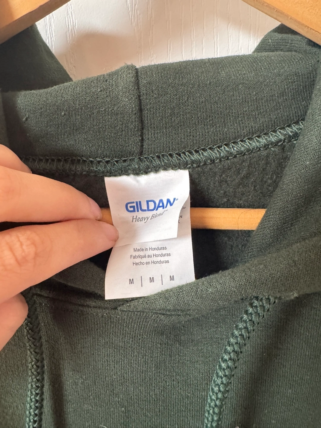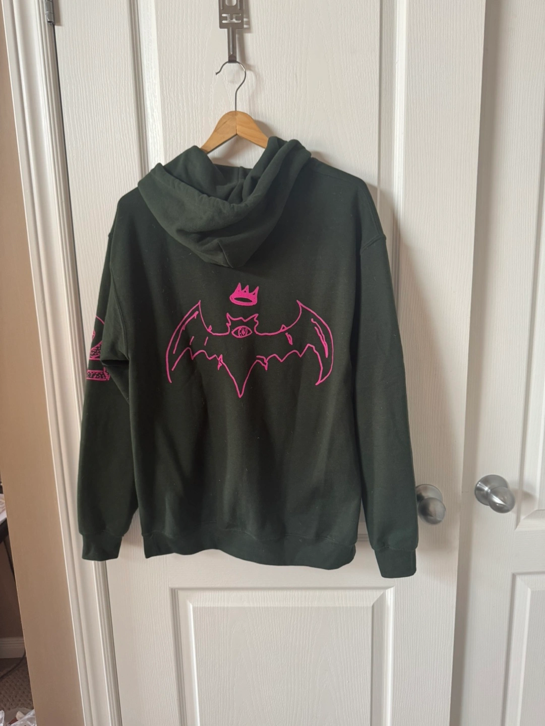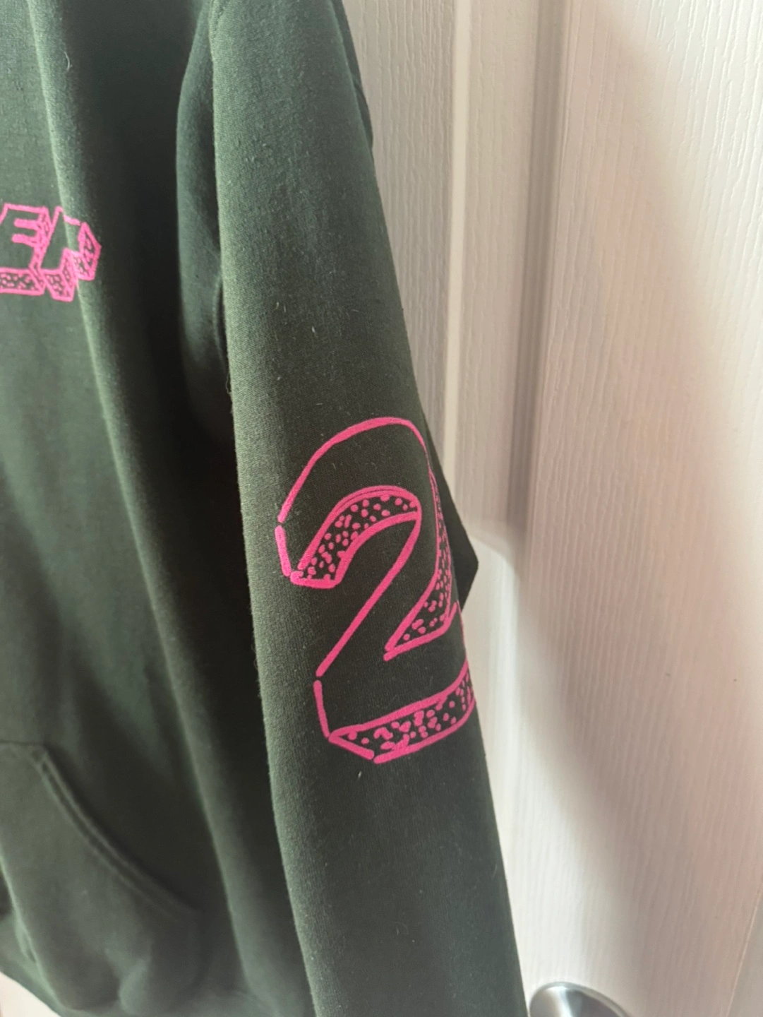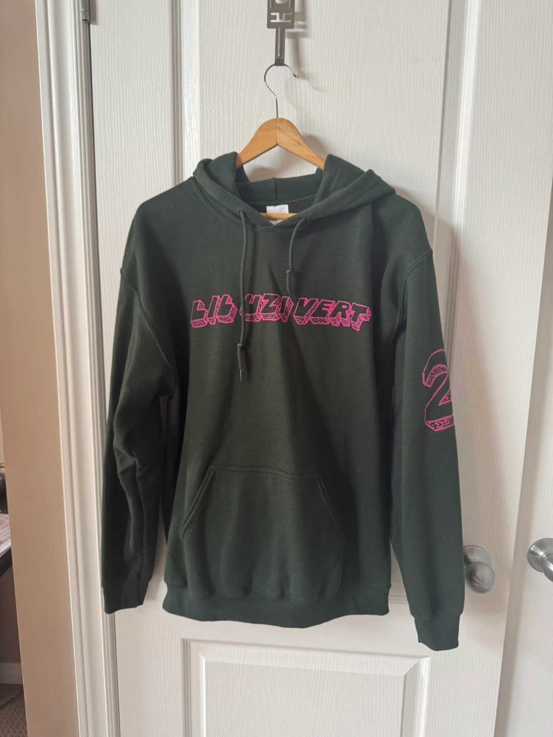 Green Lil Uzi Vert hoodie. Features a large graphic on the chest and a smaller graphic on the sleeve. Size Medium. Gildan brand.