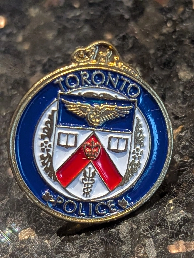 Vintage Toronto Police lapel pin. Features the Toronto Police crest. Collectible item. Great for collectors or fans of Toronto Police memorabilia.