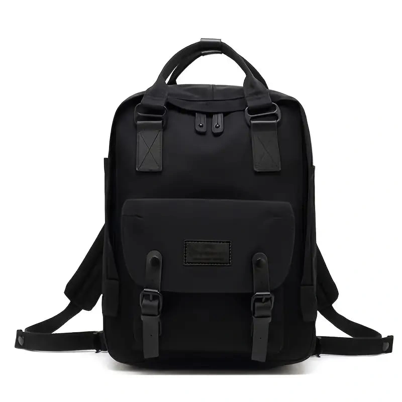 Black Kanken backpack. Durable material. Multiple compartments. Adjustable straps. Great for everyday use.