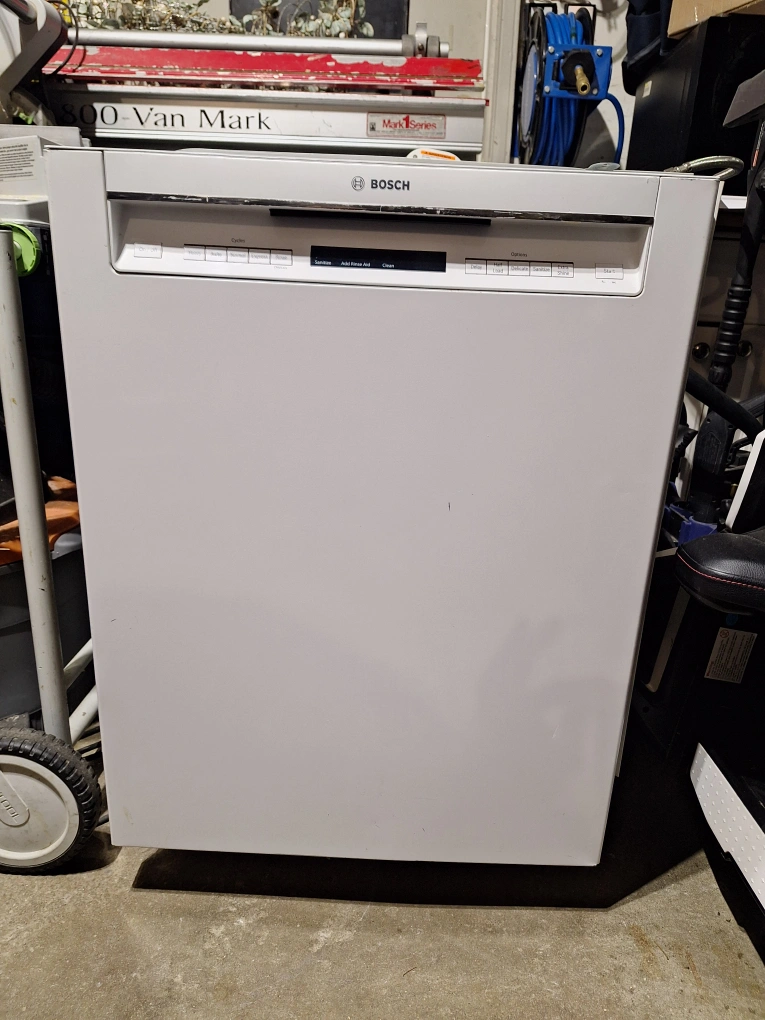 Used Bosch dishwasher. White colour. Includes racks. Good working condition. Delivery and installation can be arranged.