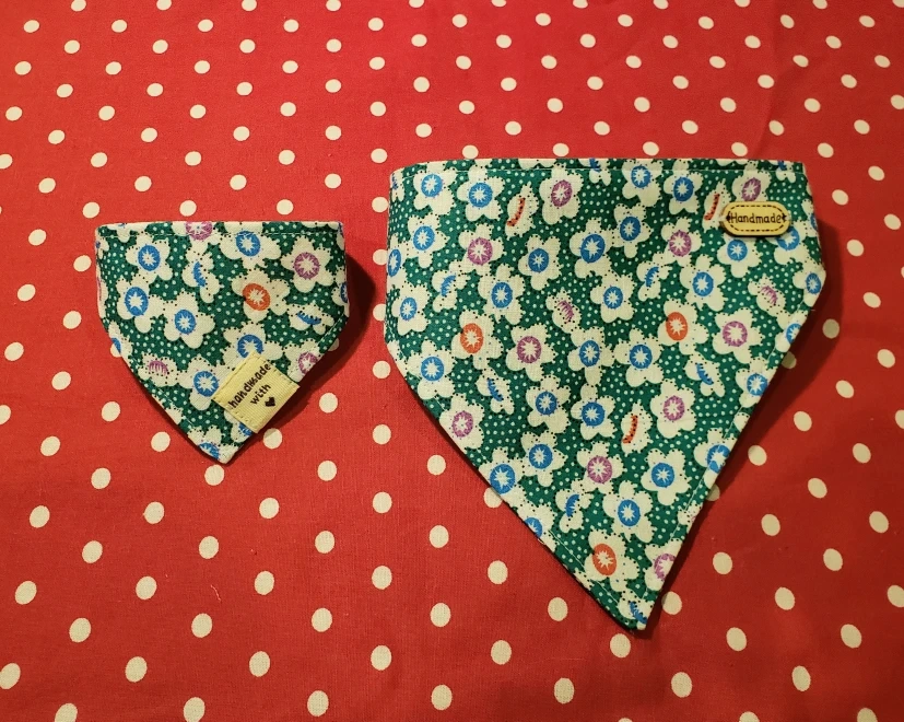 These bandanas feature a convenient scrunchie design at the back, eliminating the need for collars, snaps, or any hassle. Available in sizes XS - XXL. Effortless comfort and charm for your furry companions!
