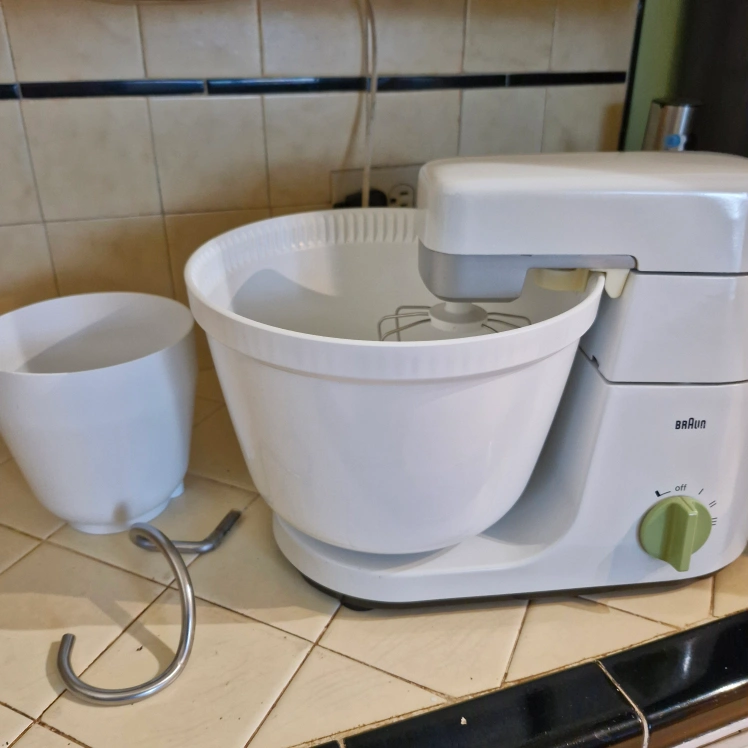 This Vintage Braun stand mixer, it's a true life machine that will last a life time and more. It come with the original bowls, the whiskey and dough hook.