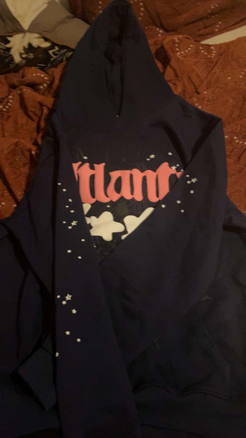 Navy blue hoodie. Features a pink Atlanta graphic with white clouds and stars.Brand new size medium price is negotiable