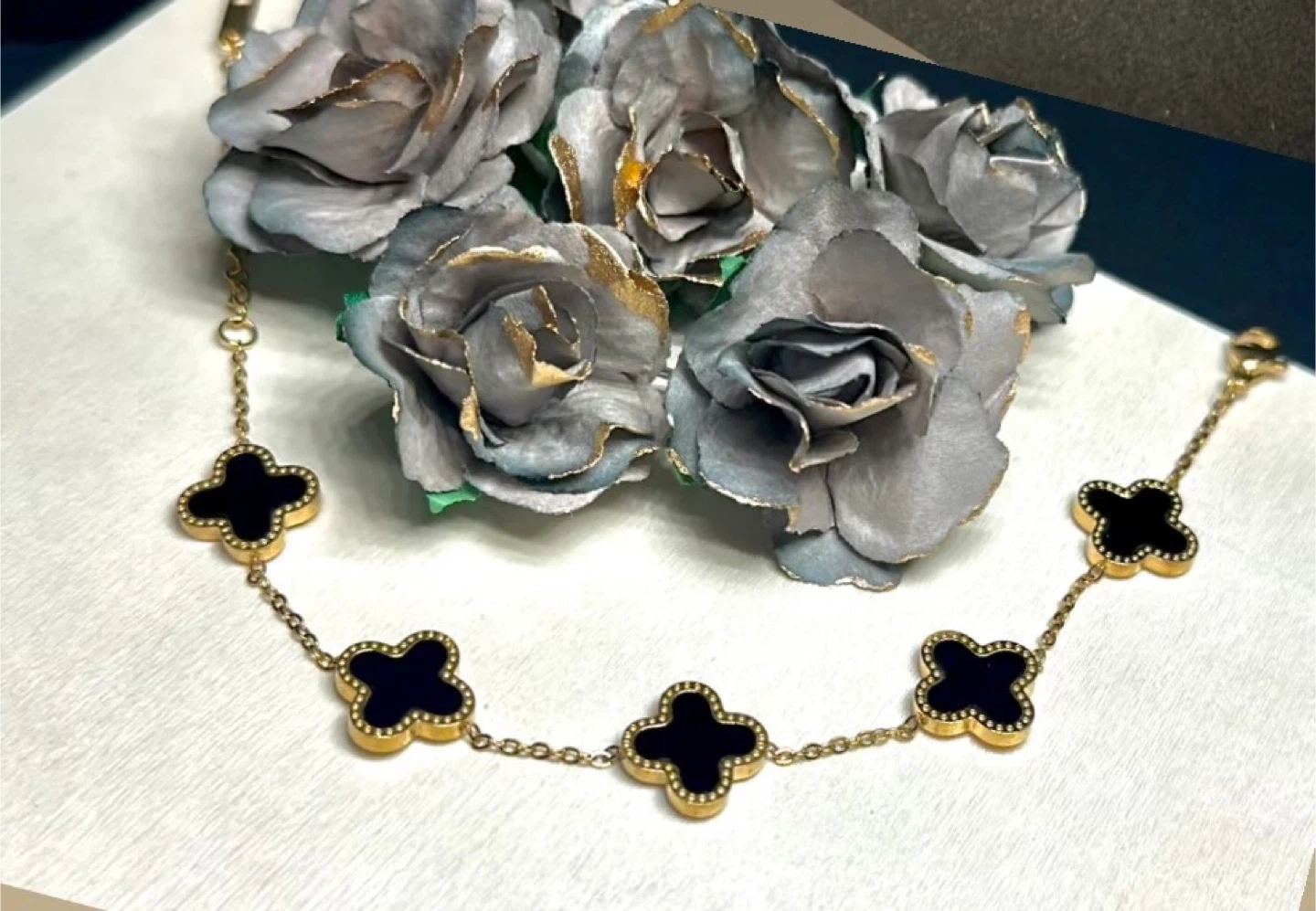 Features five clover charms.