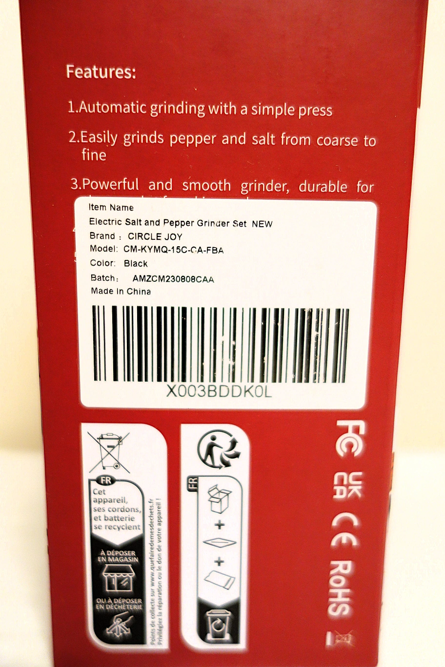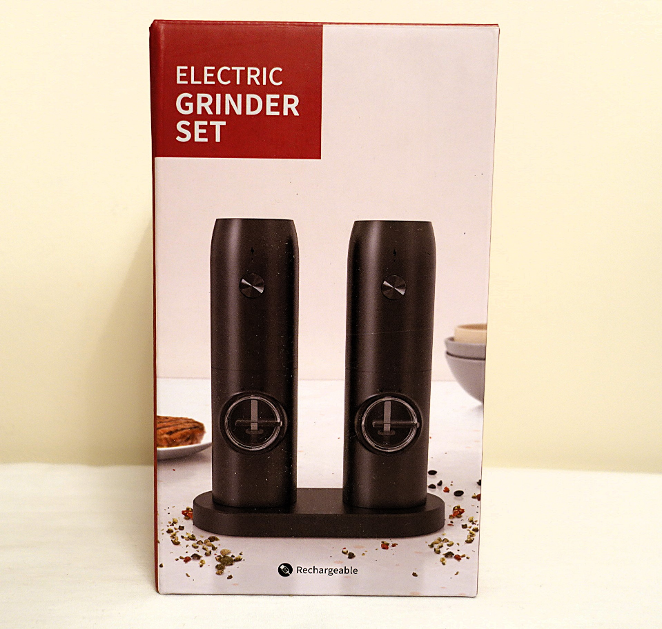 New electric salt and pepper grinder set. Rechargeable with two grinders. Easily grinds from coarse to fine. Automatic grinding with a simple press. Durable and smooth grinder.