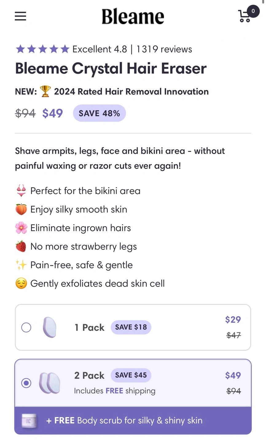 Brand new never opened hair eraser and body scrub. Prices on website are in USD.