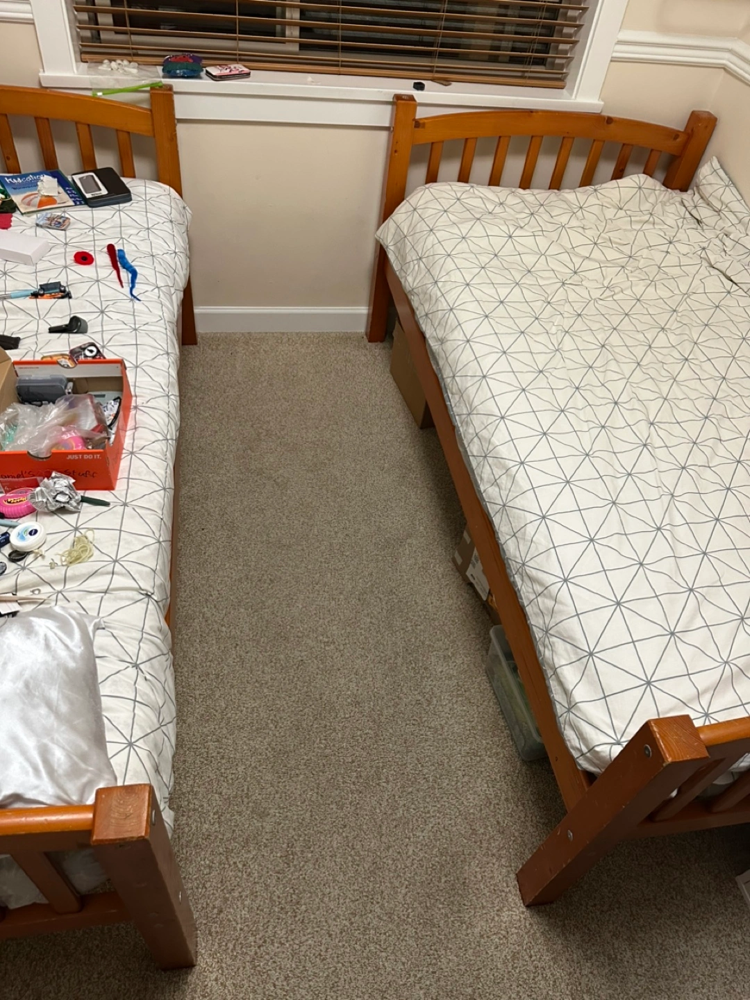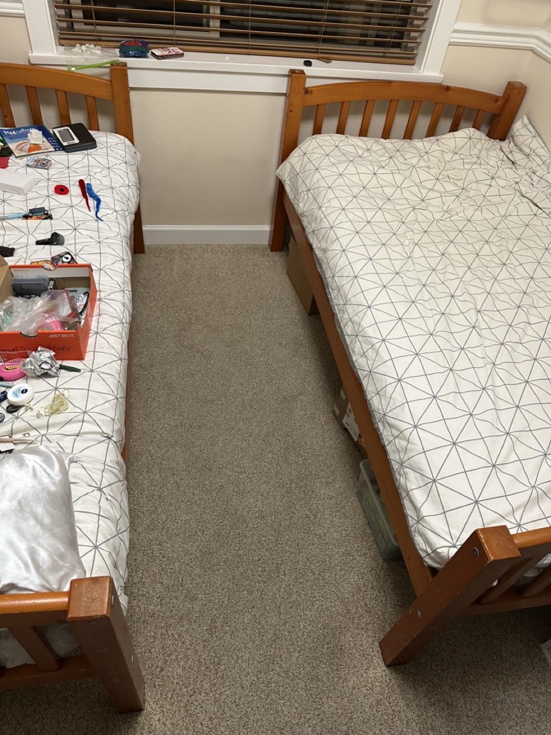 Twin over twin bunk bed with option to disassemble for side by side two twin beds.