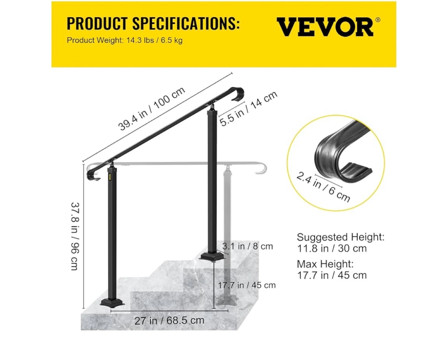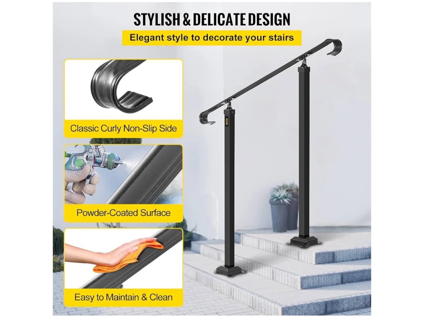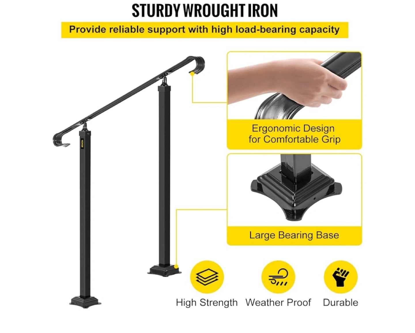Sturdy wrought iron handrail kit. Powder-coated surface, easy to maintain and clean. Includes all mounting hardware for effortless installation. Classic curly non-slip side. Ergonomic design for comfortable grip. High strength and weatherproof.