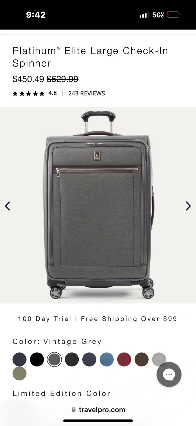 Travelpro Platinum Elite Large Check-In Spinner Luggage