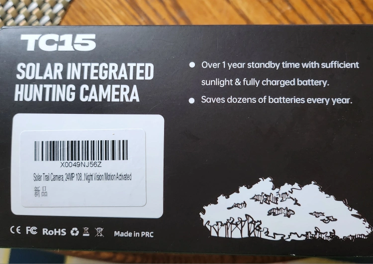 26New, never used solar powered trail camera. Features 4K video, night vision, and a long standby time. Includes IP66 waterproof rating. Great for wildlife monitoring or hunting.