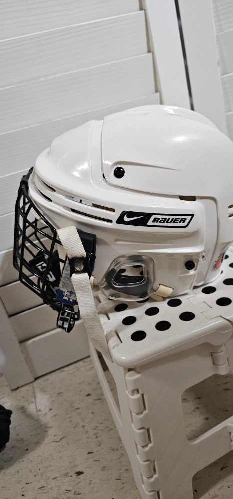 please ✔️check✅️✅️✅️ my listing lots of items from $1 to $5 in my listing type 2 White Bauer hockey helmet. Includes cage. Youth sizing. Pre-owned.