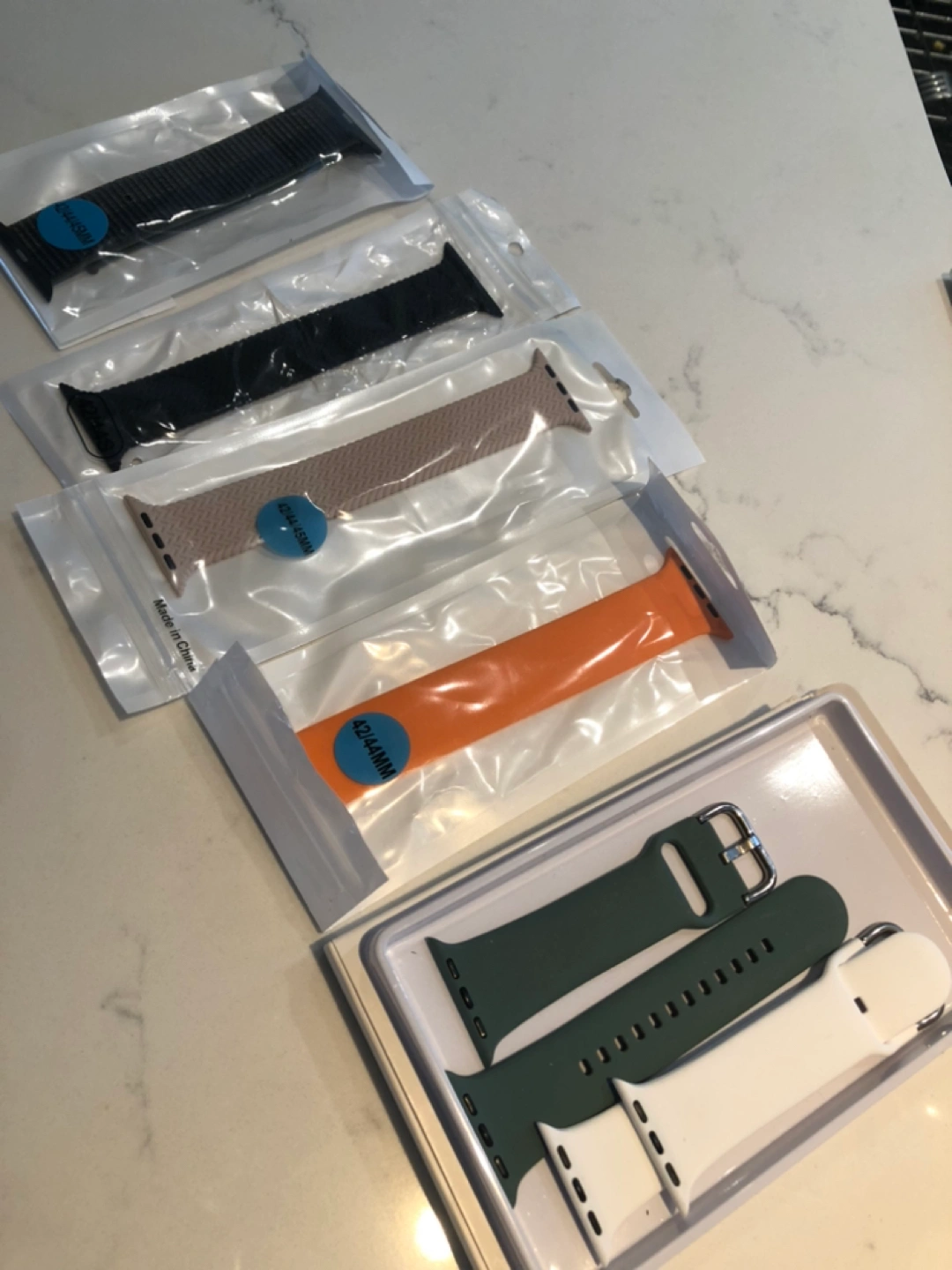 BN Apple Watch Bands bought too many could not get my size right so several orders were placed. Very good quality as good as original one soft and durable. All for 42-44mm $5 each Pls check the length and indicate which color 1-olive green 2-cantaloupe 3-black 4-sand 5-green 6-white Thank you