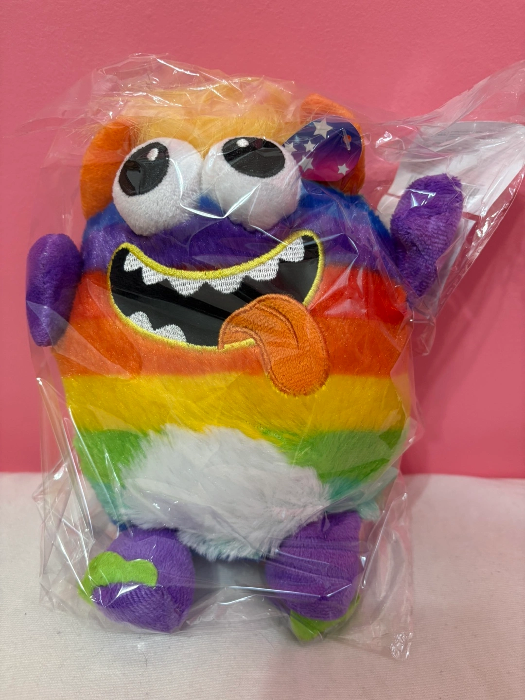 Cute rainbow coloured plush monster. Small size, great for collectors or kids. Soft and fluffy.