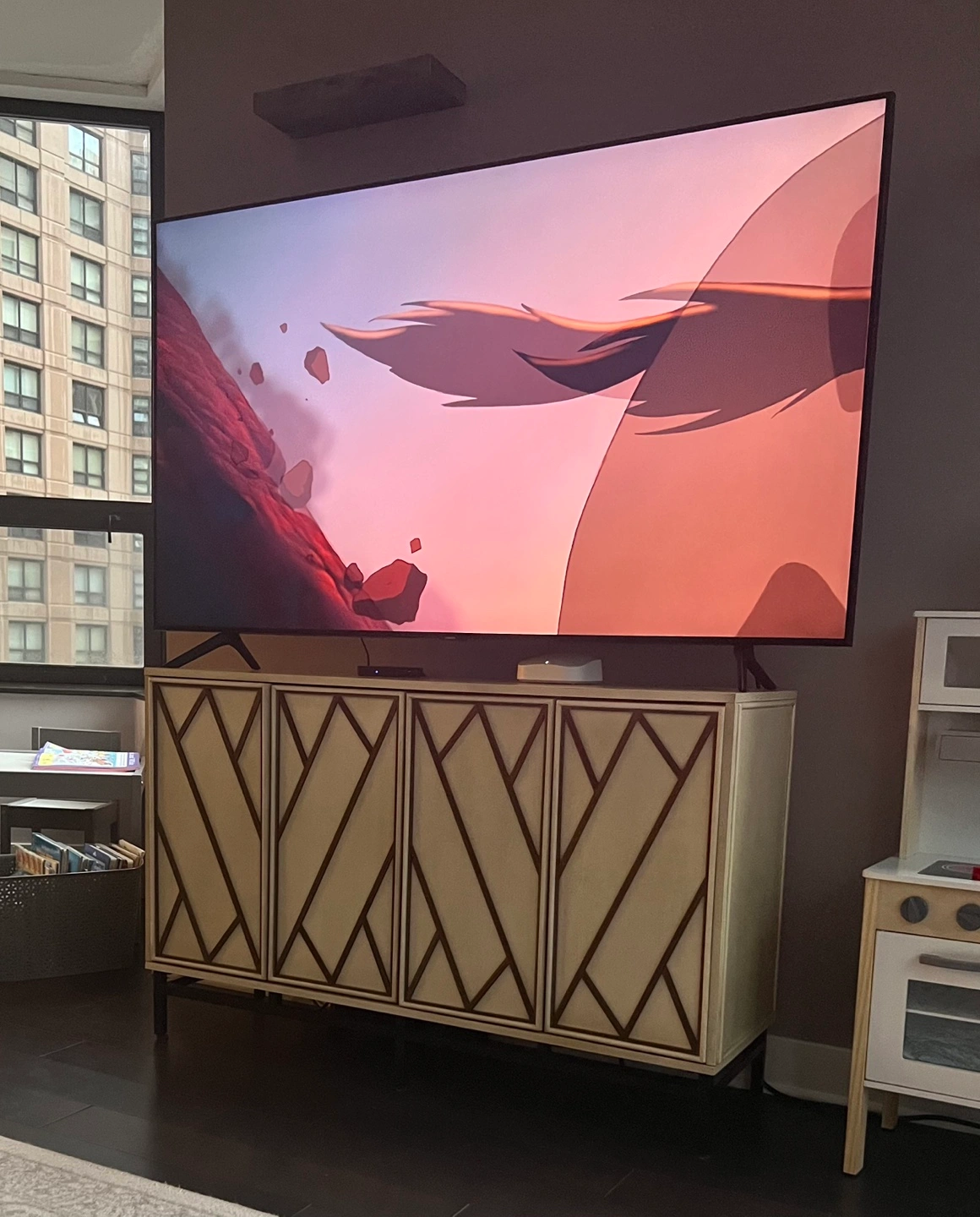 Modern three-door cabinet buffet. Can be used as TV stand -for a smaller TV than what you see in the picture (Right now it’s holding a 65 inch TV).