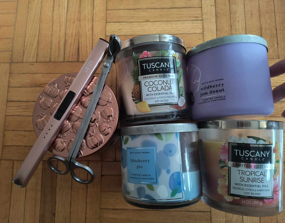 Set of Bath & Bodyworks candles and Tuscany Candles. Most are used, and only about 1/5th or 1/4 is gone. They are all great quality and have no tunneling, as I always trimmed the wicks before using and know how to use candles properly!