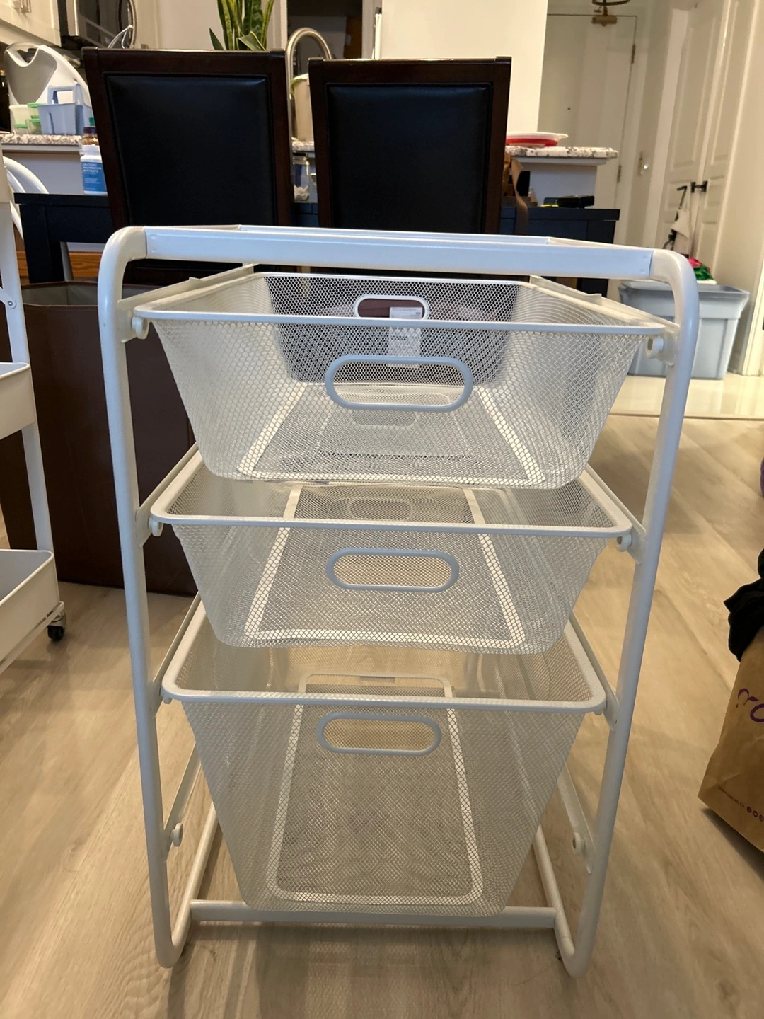 White 3-Tier Rolling Storage Cart with Wire Baskets