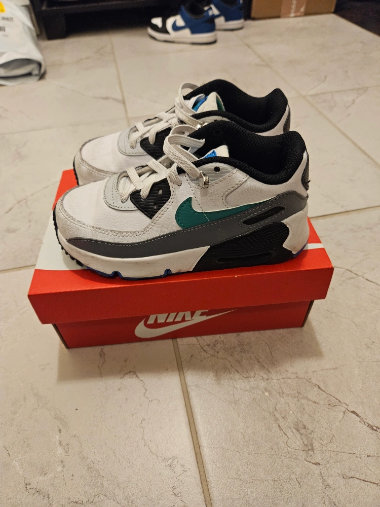 Multiple pairs of kids' shoes. Includes Nike Air Max 90s, Nike Free, Nike Air Force 1s, Adidas Superstar slip-ons, and New Balance running shoes. Various sizes and colours. Great for active kids. price starting from $15 and up