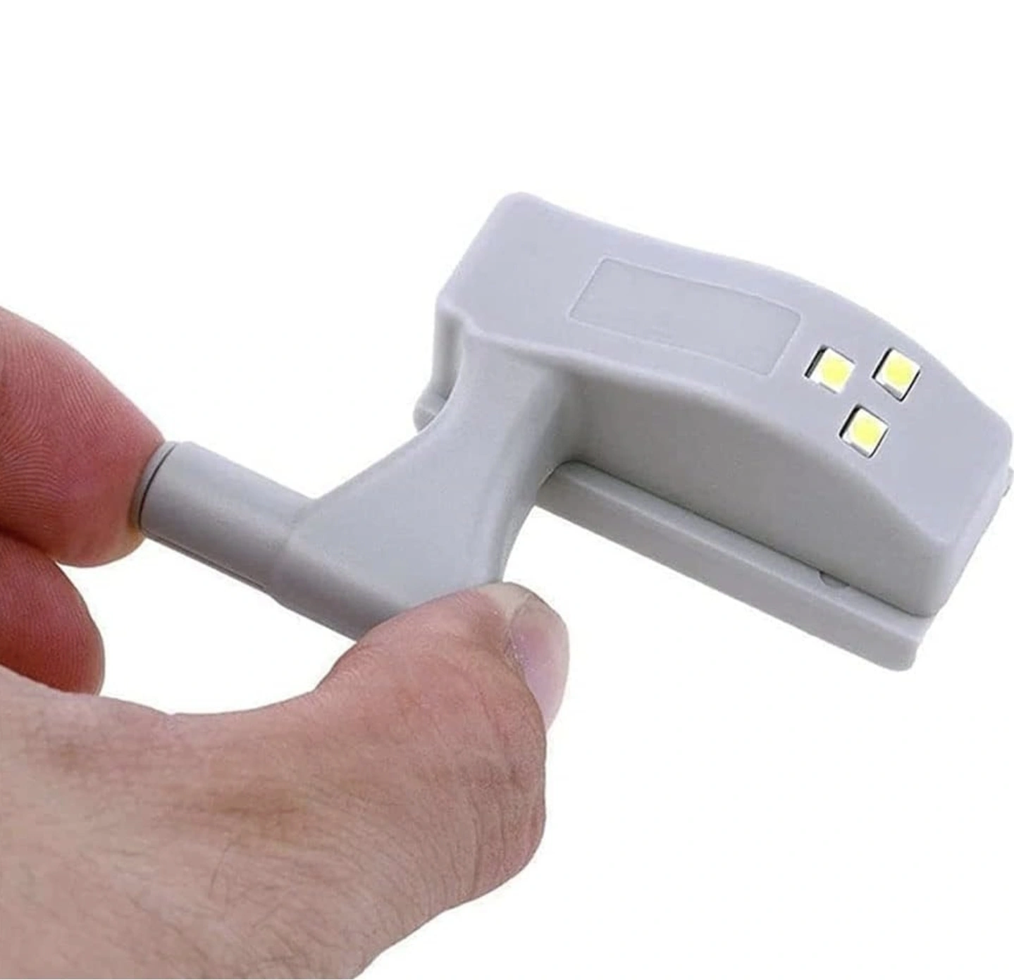 Automatic LED light. Battery powered (not included). Easy installation. Grey plastic housing. Includes hardware. Perfect for kitchen cabinets or cupboards.