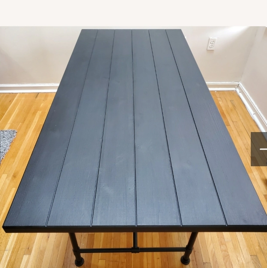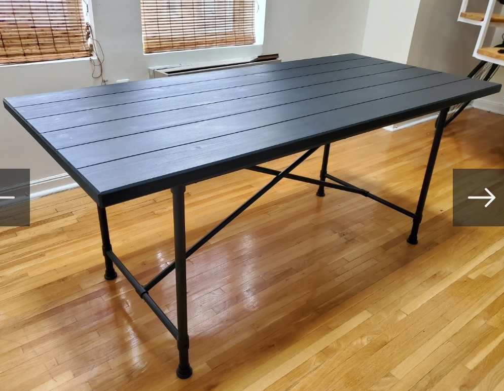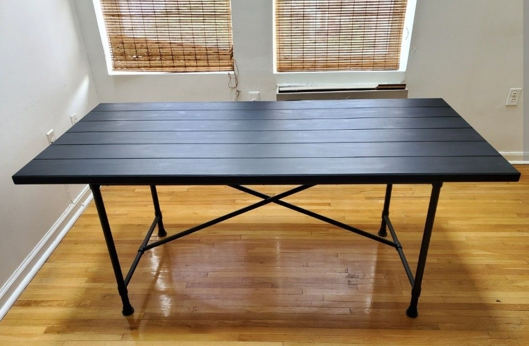 selling Ikea Black rectangular table. Seats 4-6. Metal legs. Wooden top. Good condition.