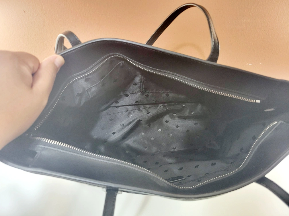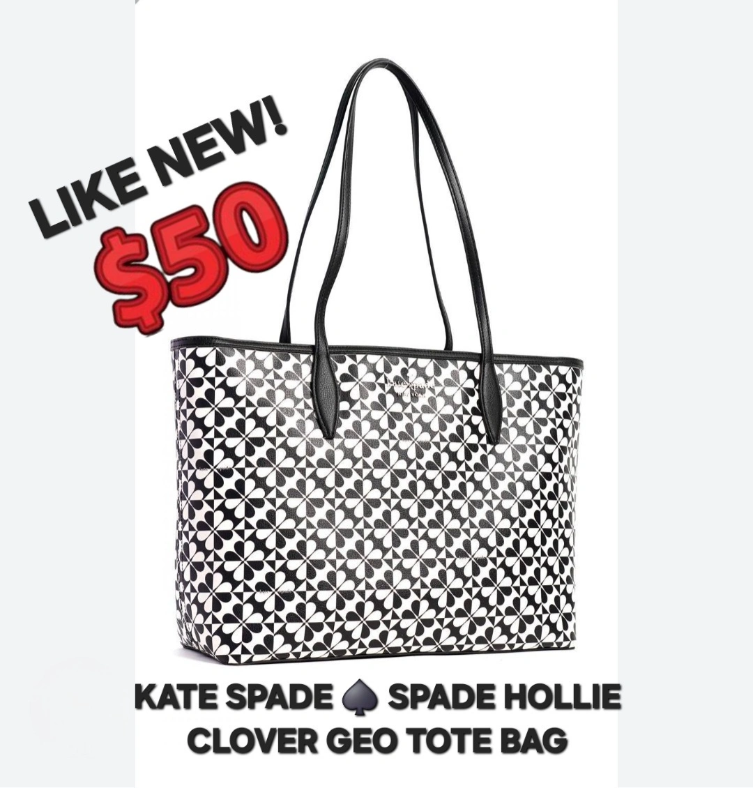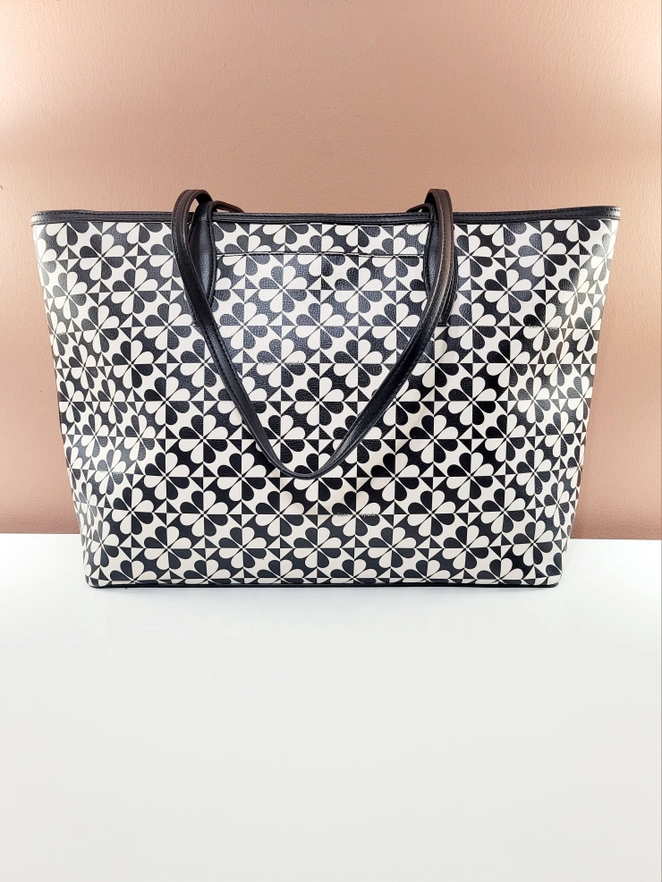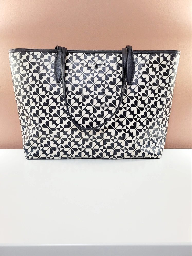 254Kate Spade Tote Bag -From: Kate Spade Niagara Falls 🇨🇦 -Brand: AUTHENTIC KATE SPADE -VERY EXCELLENT CONDITION! -LIKE NEW! BARELY USED! -Size: Large -Colour: Black and Off-white -Pattern: Spade Flower Clover Geo -Zippered top closure -1 large interior compartment -3 interior pockets in lining -1 exterior pocket in back -2 long top handles for shoulder wear -Excellent for work/school (fits laptop) -Very pretty spring/summer design! 📸PLEASE SEE PHOTO GALLERY FOR MORE DETAILS ABOUT THIS ITEM📸 ‼️Kate Spade designs/products have held their value since her passing. Therefore, the asking price is firm.‼️ Asking only $50 (VERY FIRM & FINAL) 💰CASH ONLY, PLEASE💰 ⚠️Please only message if you are SERIOUS about buying AND you know when you'd like to pick up.⚠️ 🚙Located in North Oshawa BEATRICE & RITSON area.🚙 ⏰️No holds longer than 2 days.⏰️ ❗️POSTED ON VARAGESALE, KARROT, & MARKETPLACE❗️