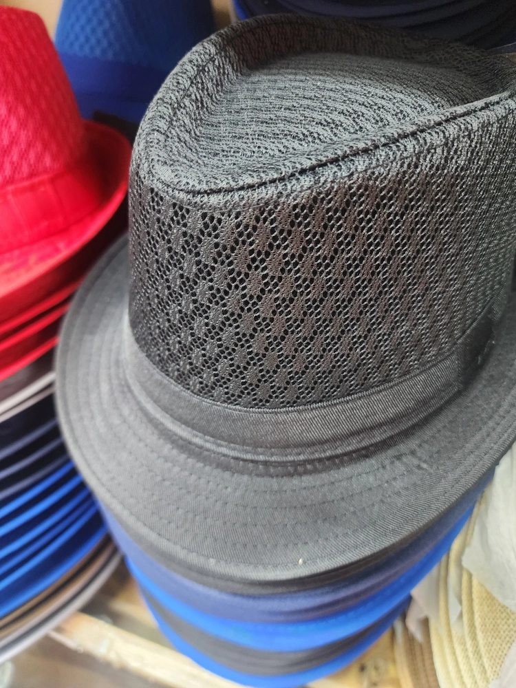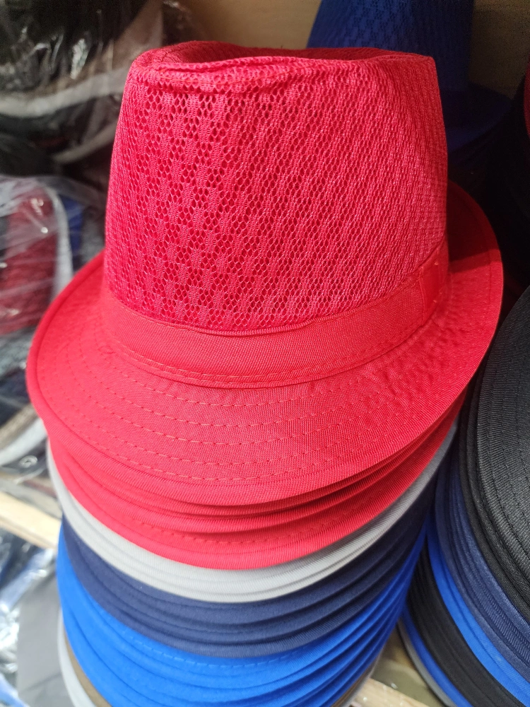 Stylish fedora hat. Lightweight and breathable. Perfect for summer. Available in black and red.