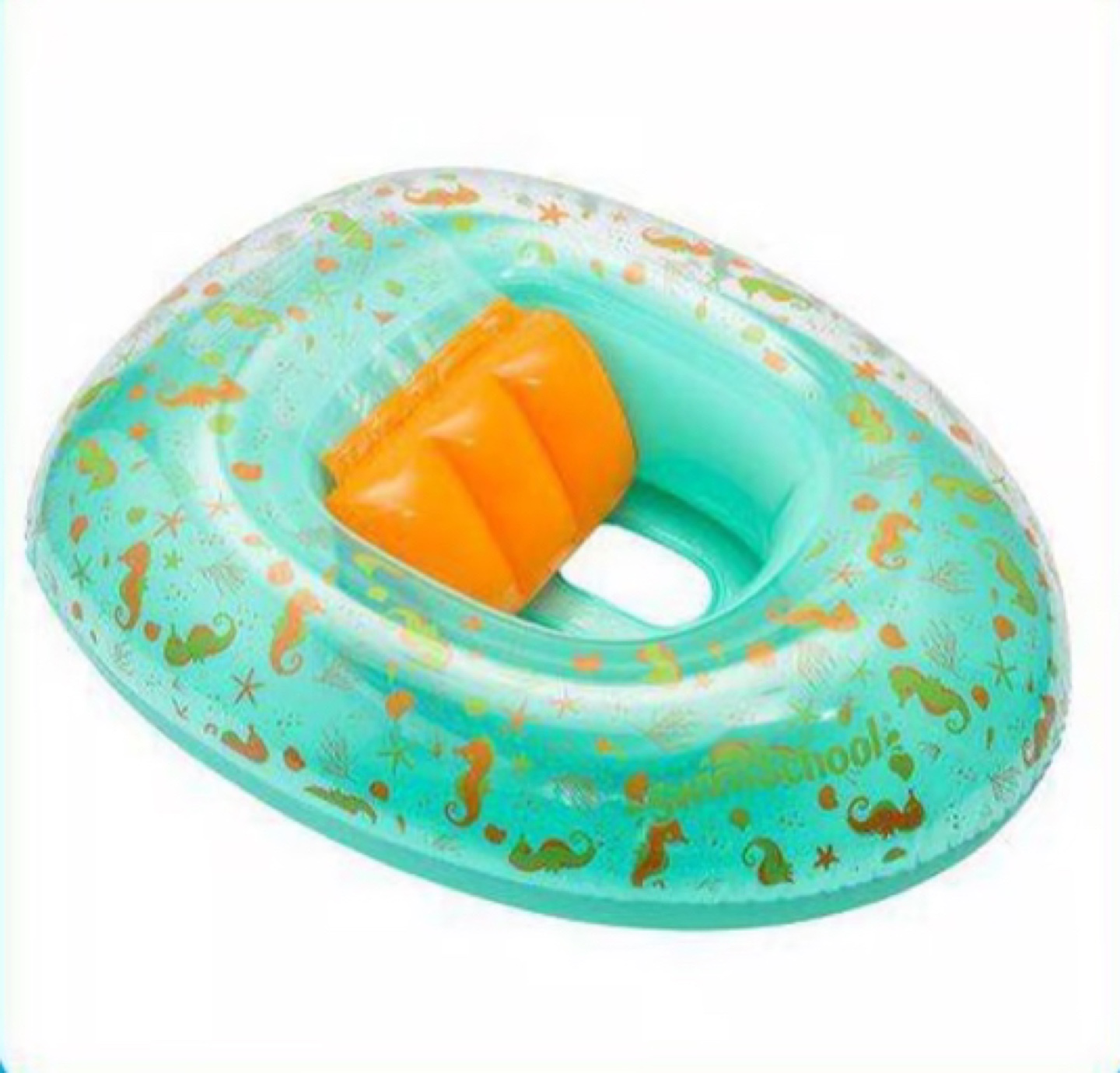 SwimSchool Inflatable Baby Boat with Adjustable Pillow Support - Teal and Orange colour. Sea horse design.