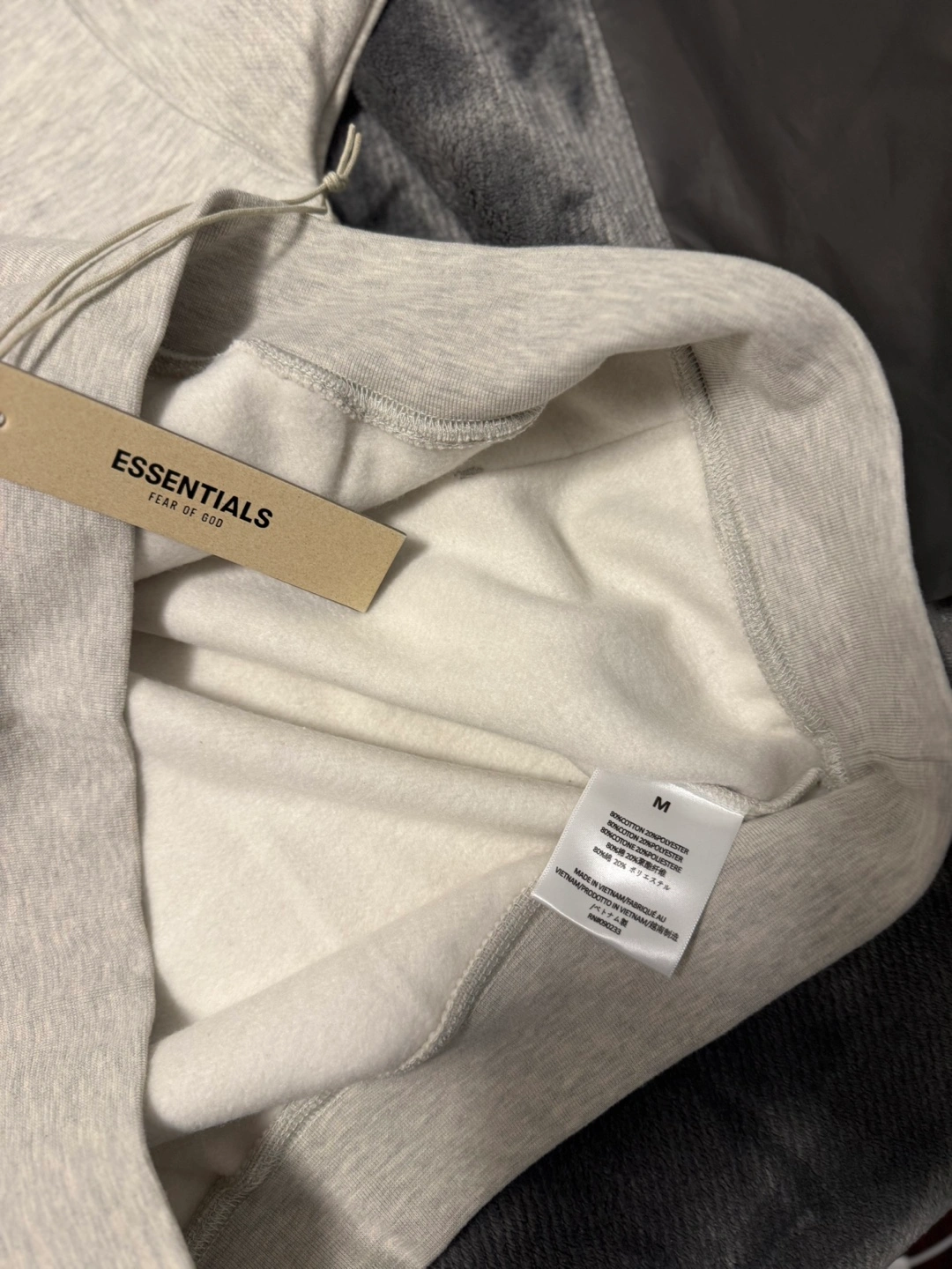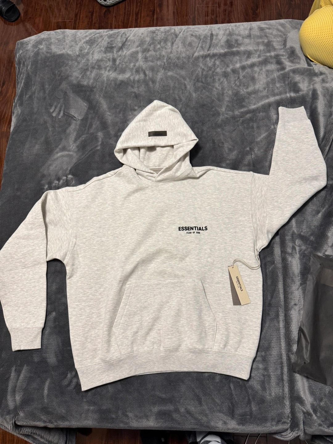 Grey oversized hoodie. Features Fear of God Essentials branding. Excellent condition. new Includes tags.