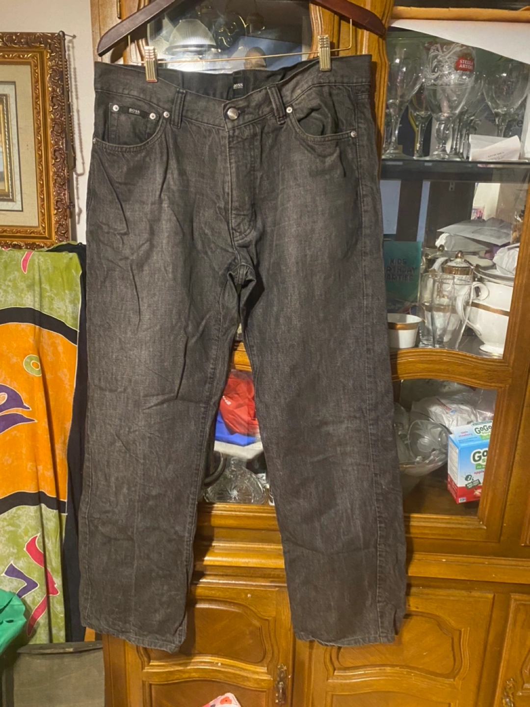 Men's Hugo Boss Texas jeans. Size 38x34. 100% cotton. Dark grey wash. Straight leg.