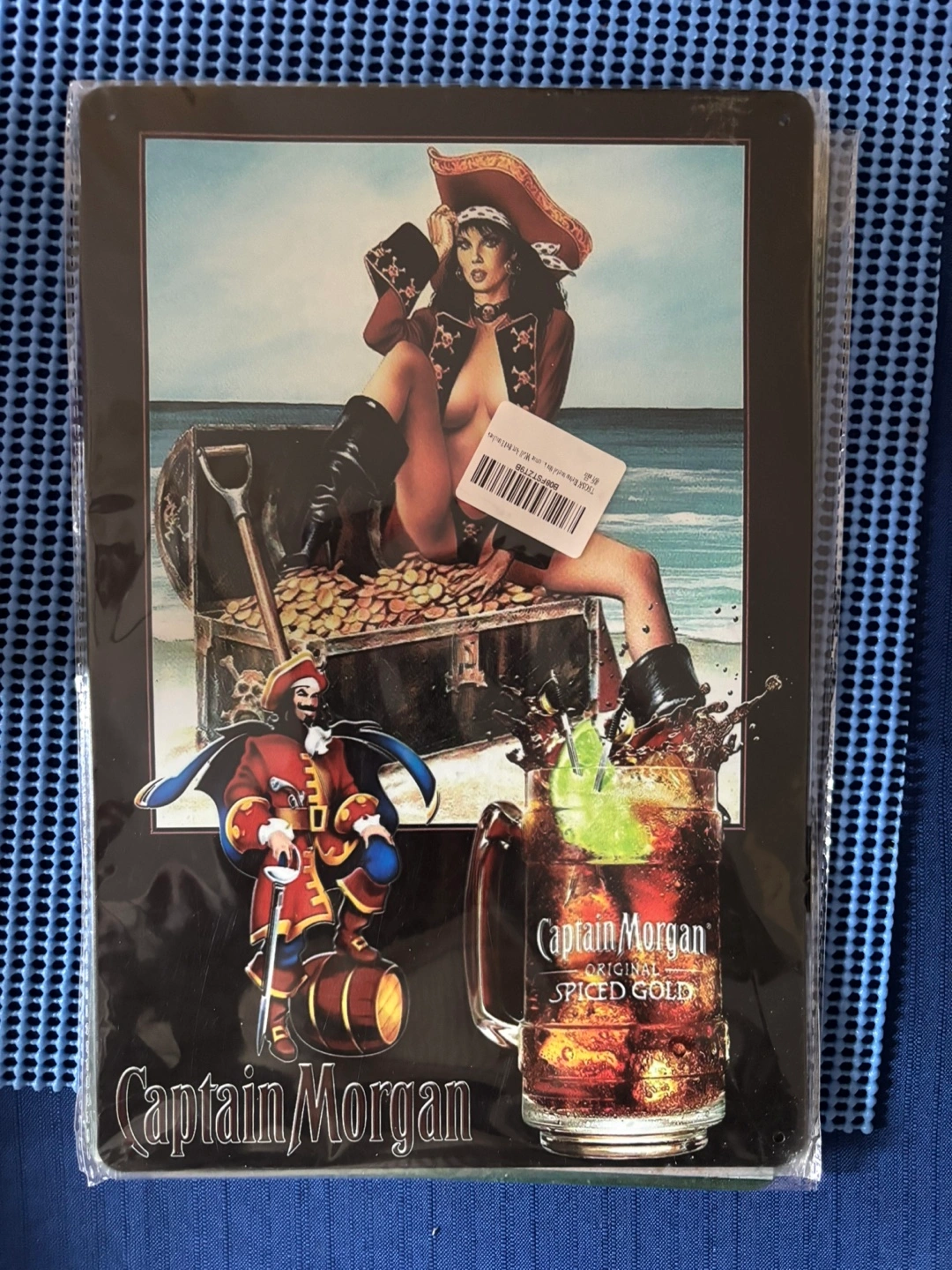 Collectible Captain Morgan metal sign. Features pirate artwork and a glass of Captain Morgan Spiced Gold. Great for bars or collectors.
