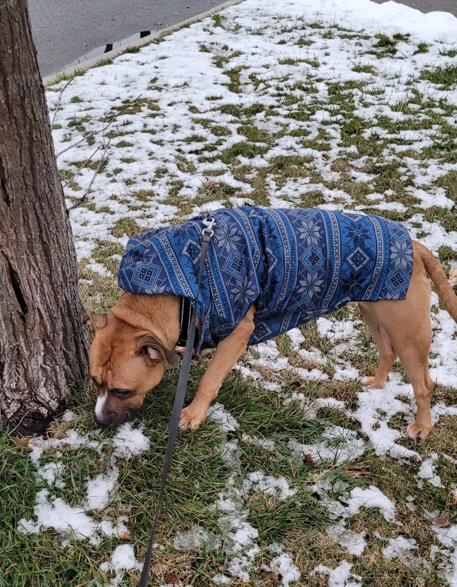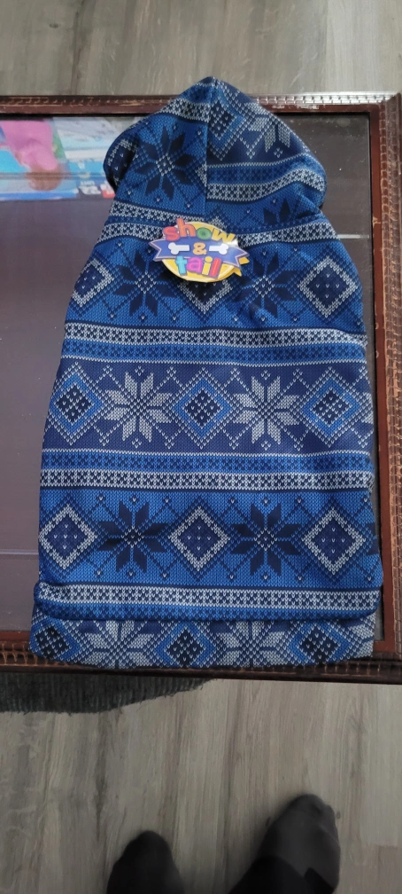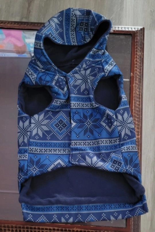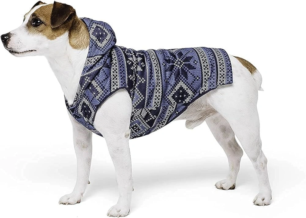 Adorable dog hoodie featuring a navy and silver fair isle pattern. Hooded design. Perfect for colder weather. by Show & Tail. Sizes available