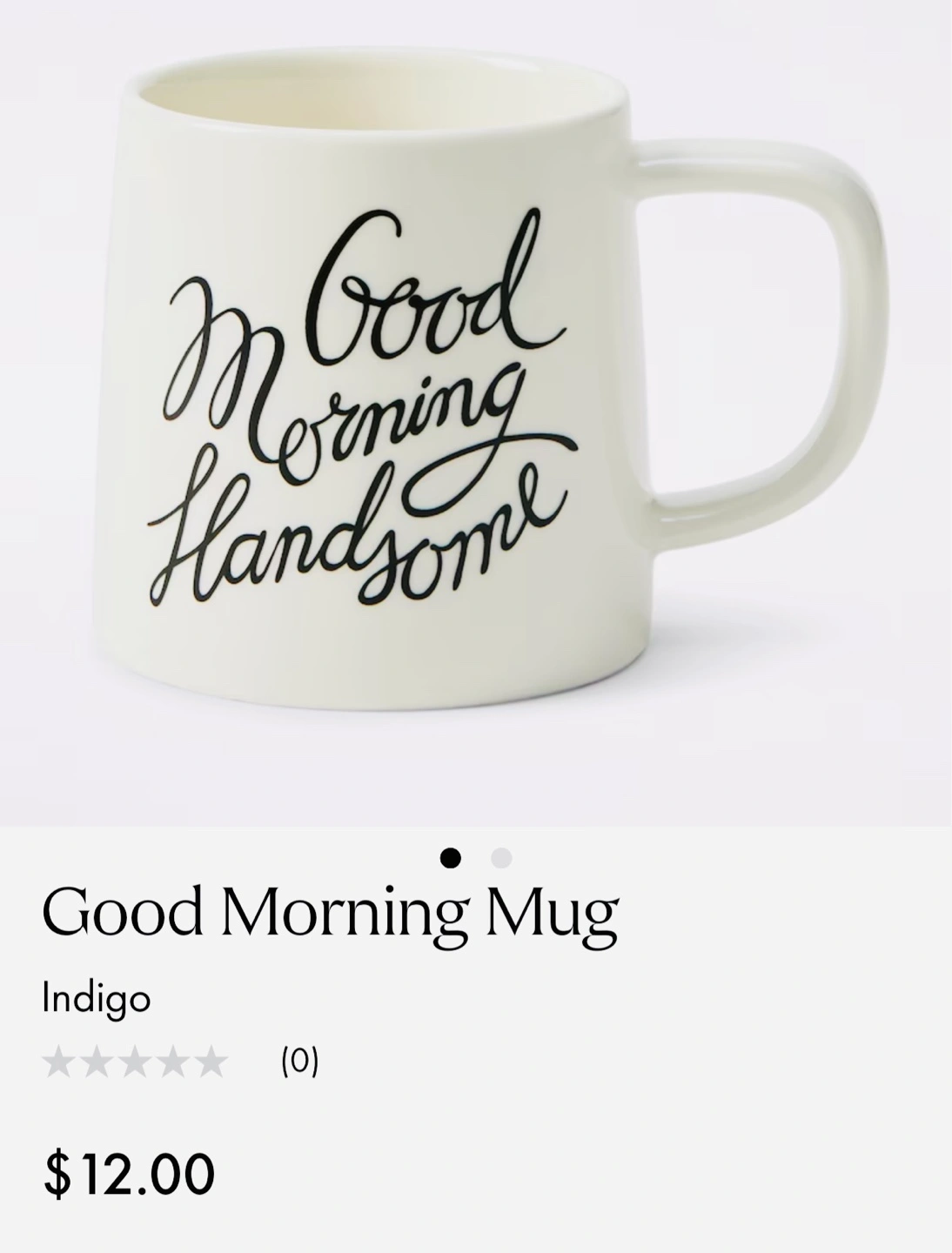BNIB Indigo Mug, GOOD MORNING HANDSOME - Retail $12.00