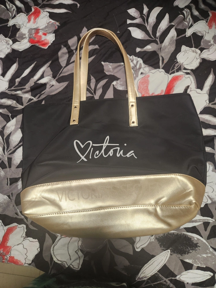 Black tote bag with gold accents. Features Victoria's Secret logo. Interior pocket. Two handles. price is firm. pick up midland and Danforth or 401 bay street or stc mall or Kennedy stn