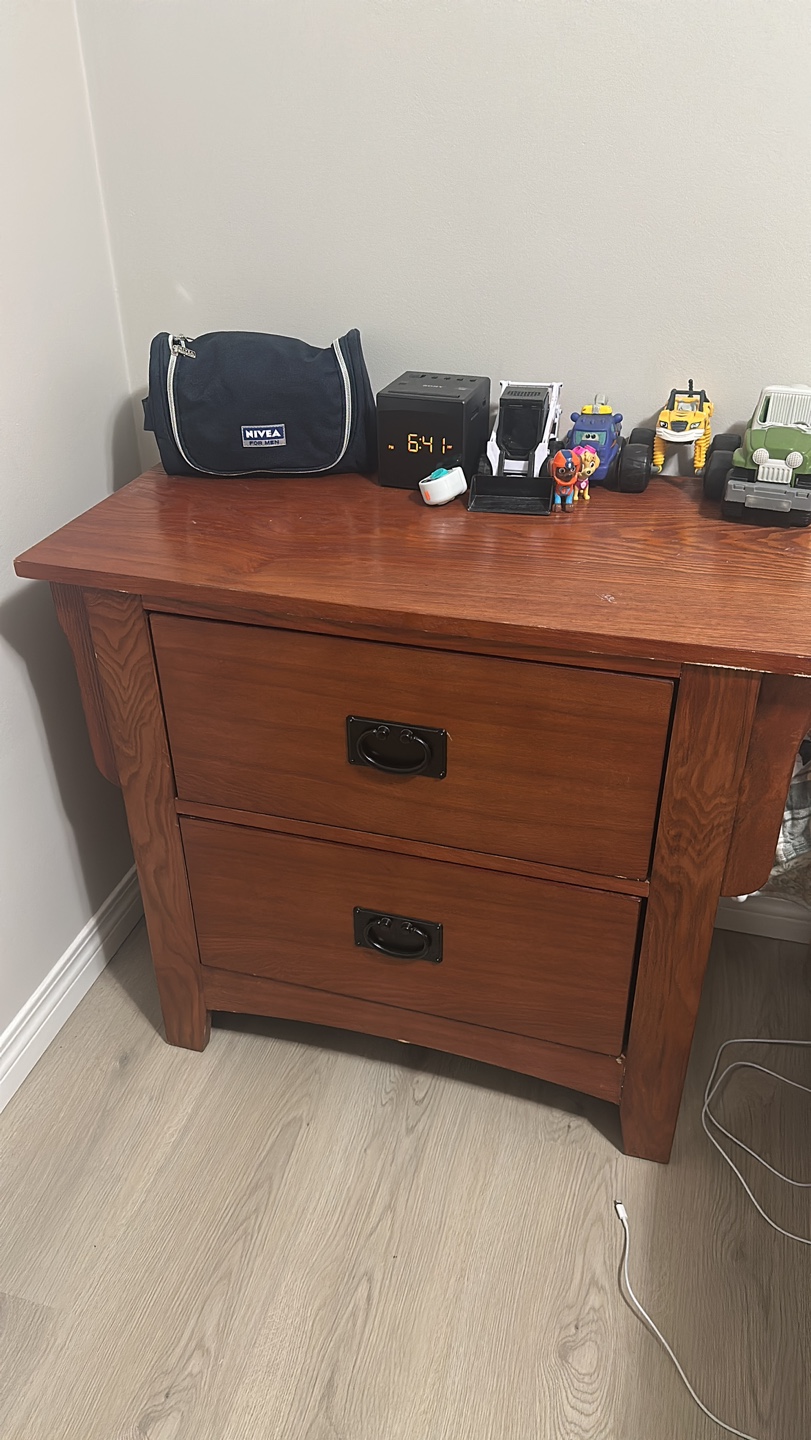 1 / 11 / 1Buy & SellTwo-Drawer Wooden Nightstand - Set of 2Two-Drawer Wooden Nightstand - Set of 2$60Solid wood nightstand. Two drawers with black knobs. Good used condition. Some minor wear.WHERE TO MEETCheck LocationView MapSELLERverifiedAlexandraForest Lawn1418 reviews0 chats·0 favorites·22 viewsSEND CHAT TO SELLERHi Alexandra! I’m interested in your listing.Hi Alexandra! I’m interested in your listing.Get the Karrot app to chatSign In to chat