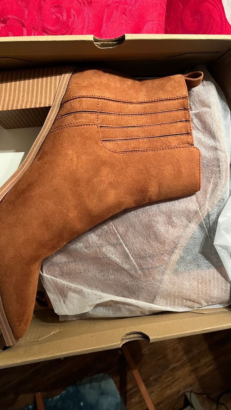 HomeBuy and sellBrown Suede Ankle BootsChristyHastings881 reviewBrown Suede Ankle BootsWomen's Fashion · $50Women's brown suede ankle boots. Block heel. Pointed toe. New in box. LEATHERConditionNewSize11Where to meet380 Dufferin Ave1 chat