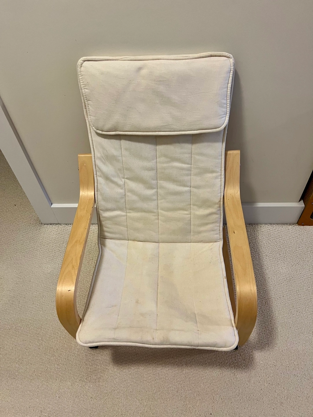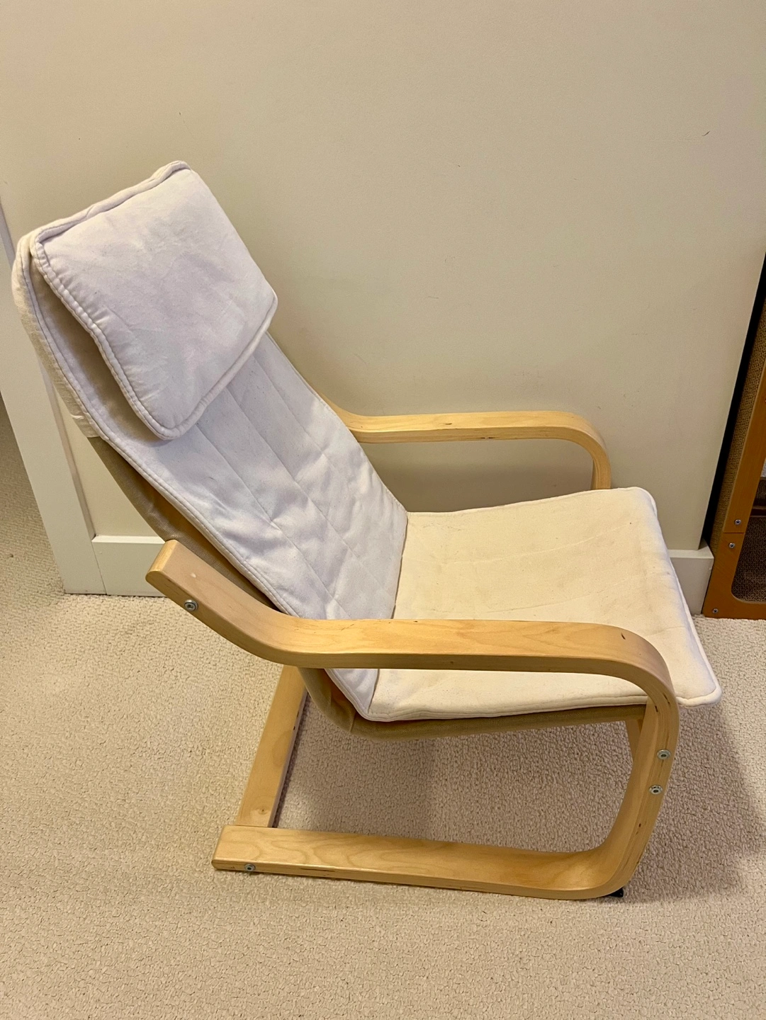 IKEA Children's Wooden Chair with Cream-Colored Cushion
